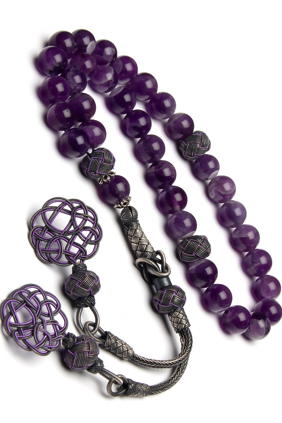 1000 Ayar Gümüş Kazaz Püsküllü 8mm Ametist Doğaltaş Tesbih