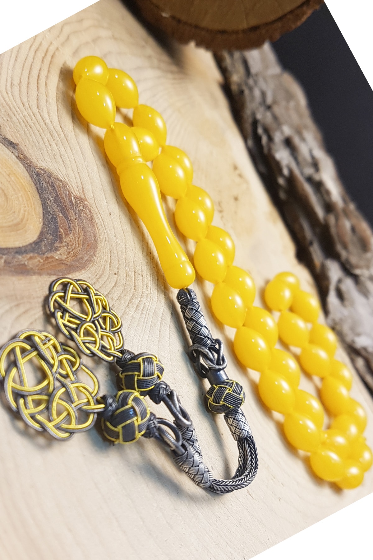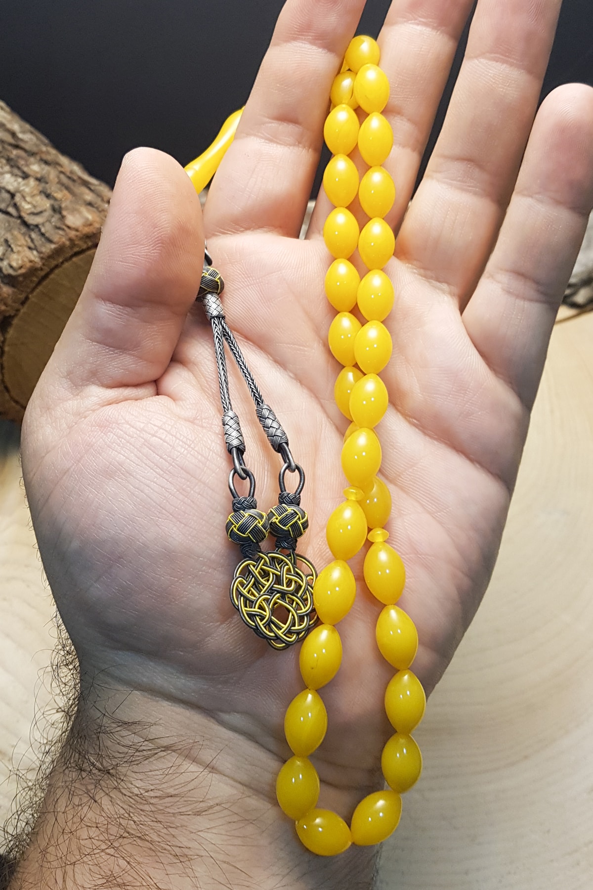 1000 ayar gümüş kaplama ile zenginleştirilmiş, uzun ömürlü ve şık bir görünüm sunar; Sarı sıkma kehribar taşı, doğal güzelliğiyle dikkat çeker ve her kullanımda eşsiz bir dokunuş hissi verir; 8x12mm boyutlarındaki kehribar taşları, hem estetik hem de rahat bir kullanım sağlar; Püskül detayları ile zenginleştirilmiş tasarım, tesbihin estetik değerini artırırken aynı zamanda zarif bir dokunuş katmaktadır;