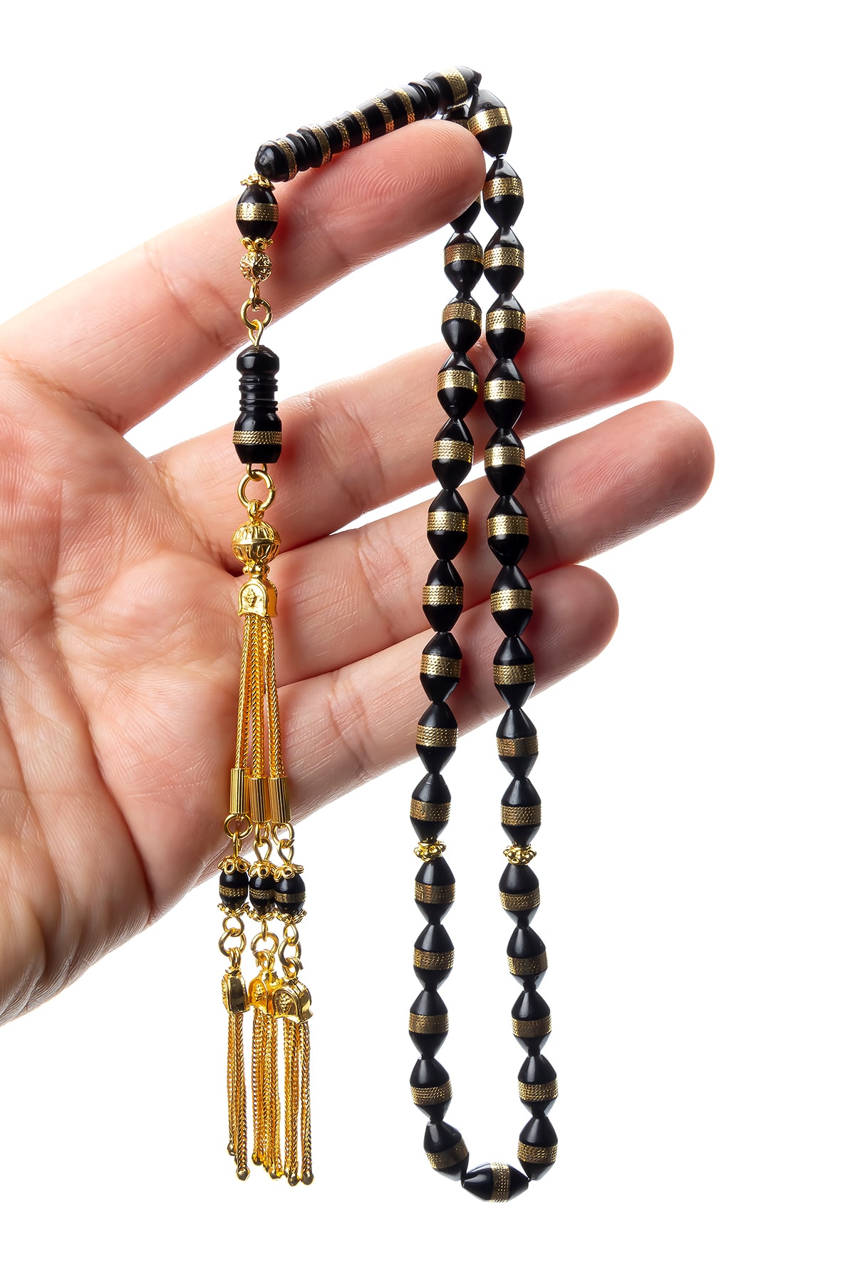 24k Altın Kaplama Gümüş Püsküllü 7x11mm Işlemeli Kuka Tesbih