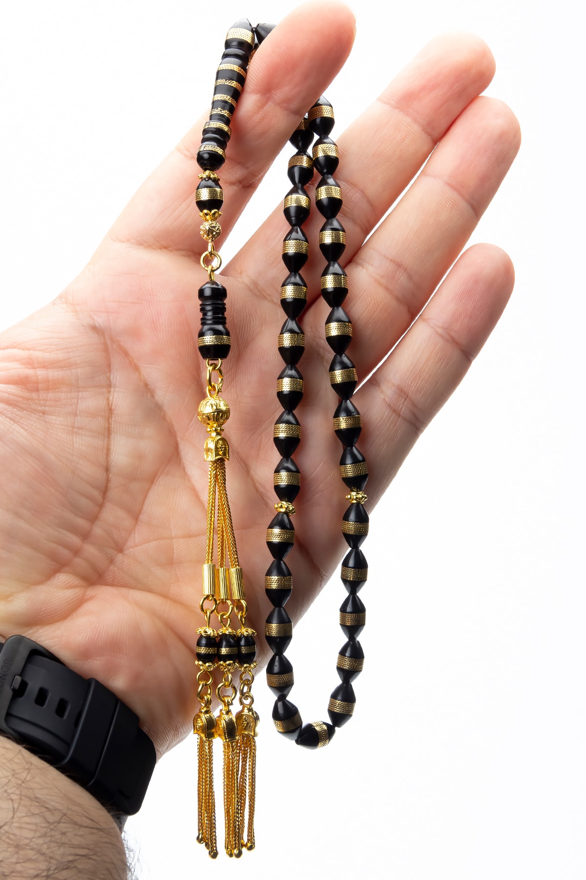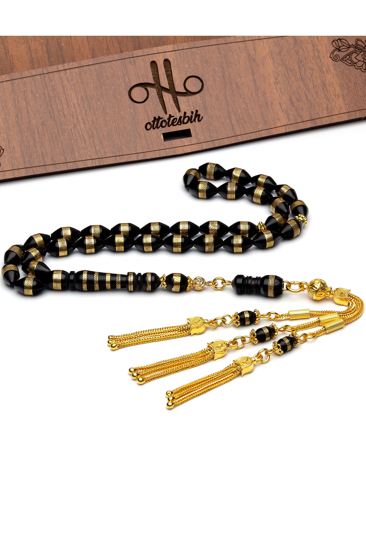 24 ayar altın kaplama ile zenginleştirilmiş, uzun ömürlü ve şık bir görünüm sunar; Gümüş püskül detayları ile göz alıcı bir estetik sergiler ve her kullanımda dikkat çekici bir etki yaratır; 7x11mm boyutlarındaki sarmal kuka tasarımı, rahat bir tutuş sağlar ve kolay kullanım imkanı sunar; Ağaç taşı kullanımı, tesbihin doğal ve otantik bir dokunuş kazanmasını sağlar;