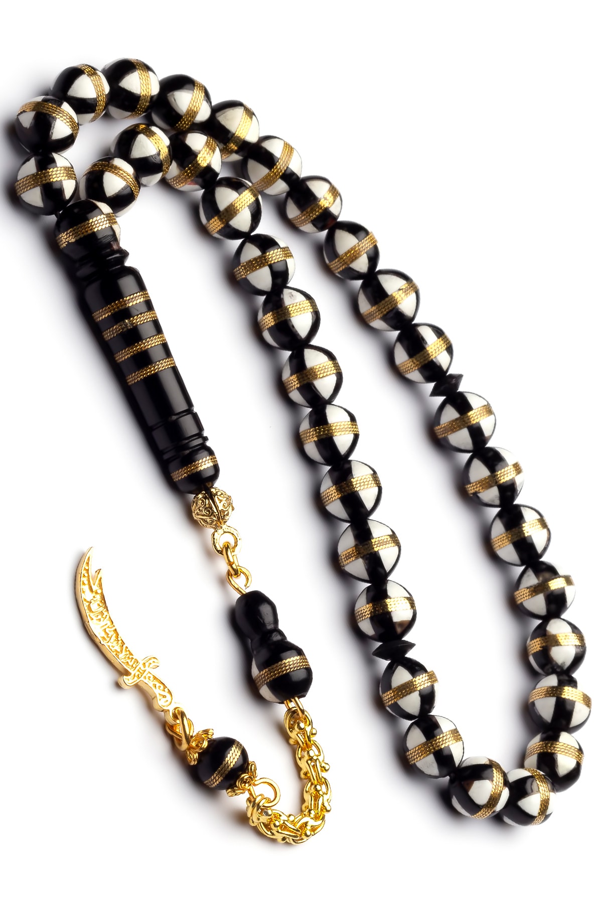 24k Altın Kaplama Gümüş Püsküllü Zülfikar Kılıcı Işlemeli Kuka Tesbih