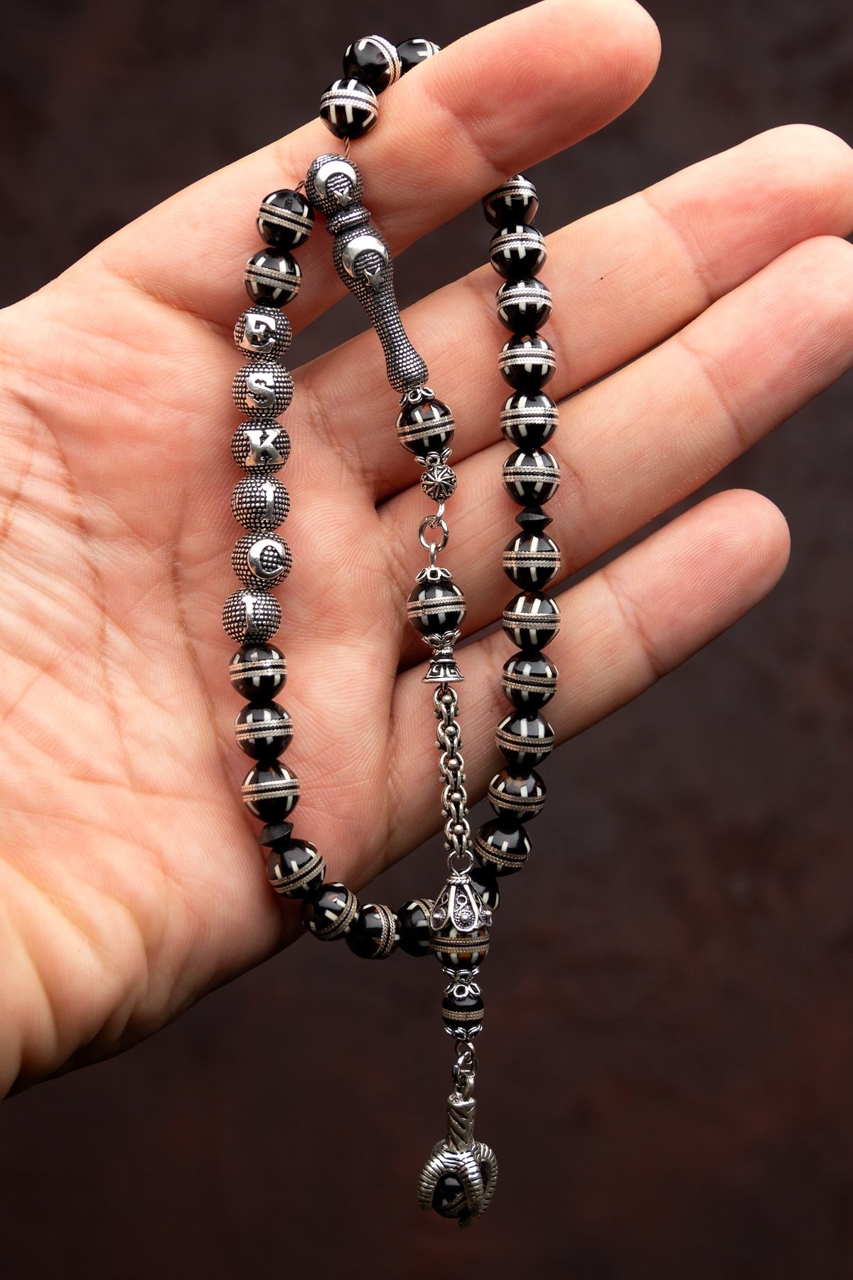 925 Ayar Gümüş Aksesuarlı Kişiye Özel Isimli 8mm Gümüş Sarmal Kuka Tesbih