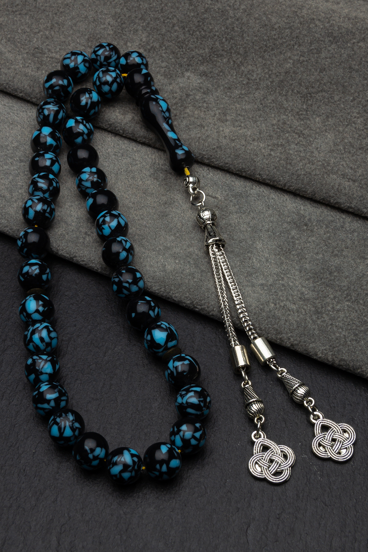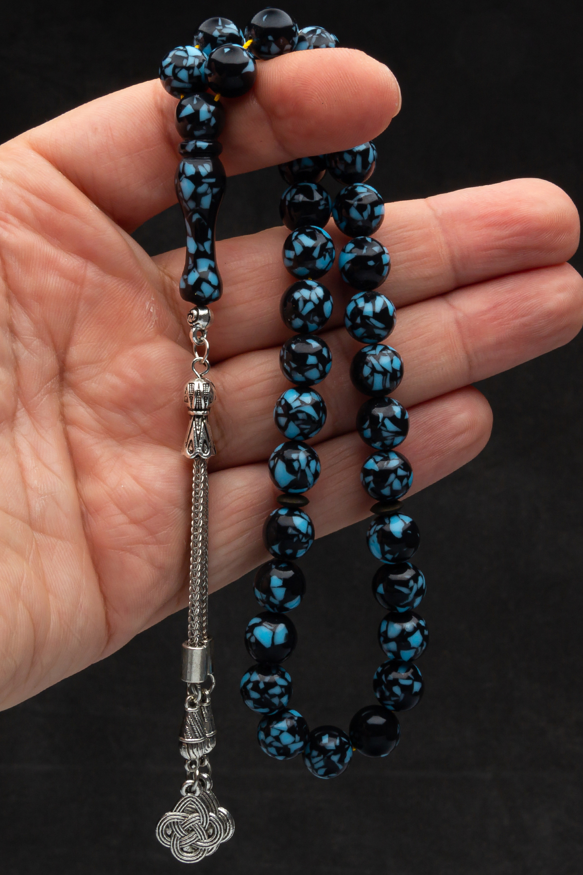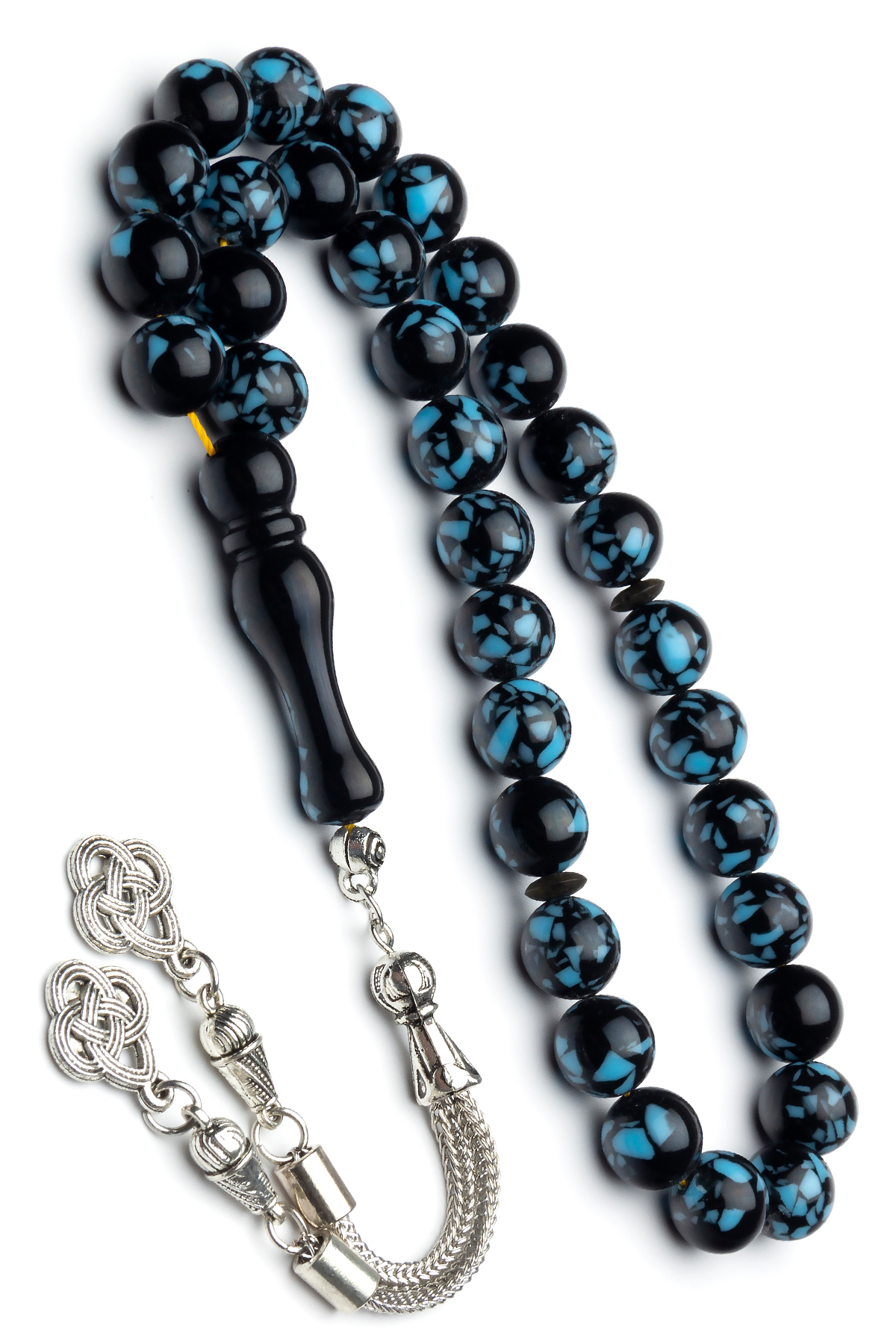 Alpaka Püsküllü Mozaik Toz Kehribar Tesbih Gümüş Kaplama
