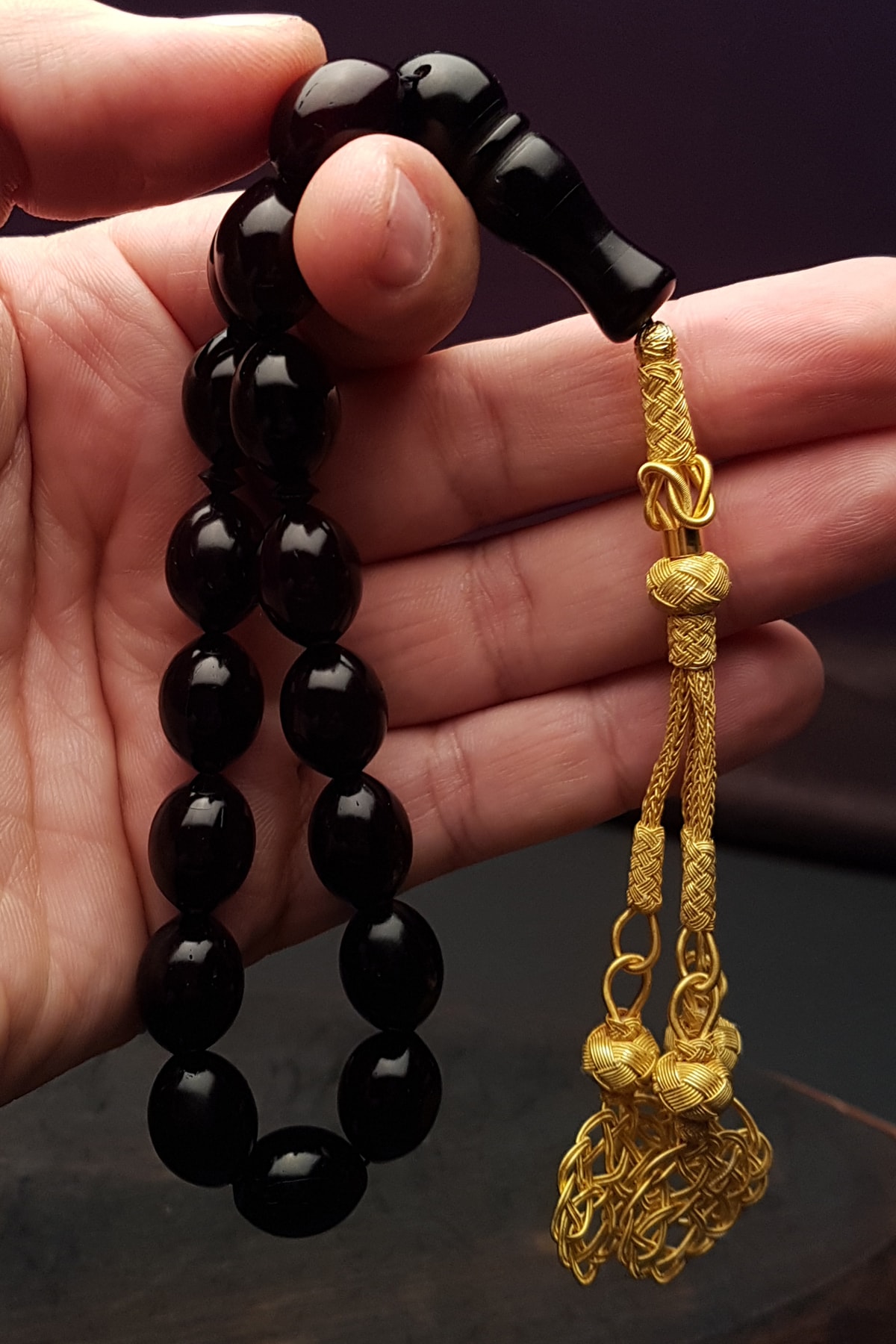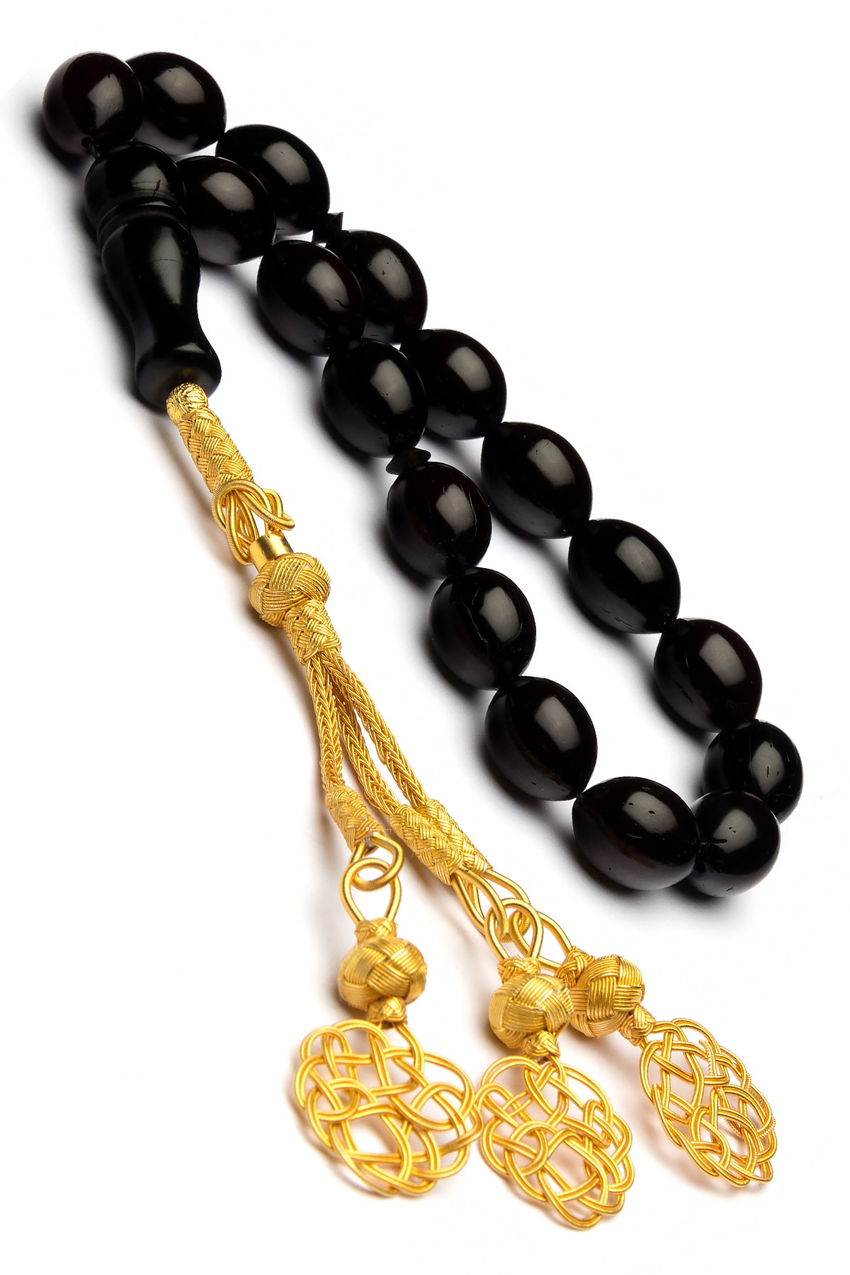 Altın Kaplama 1000 Ayar Gümüş Kazaz Kamçılı Maskot Boy Siyah Kuka Tesbih