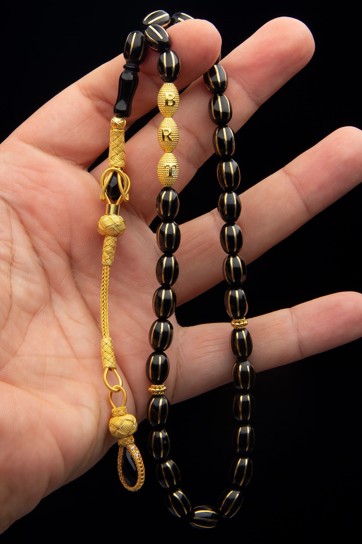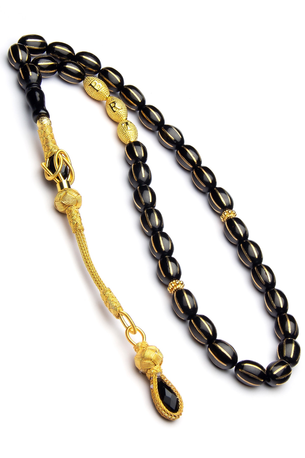 Altın Kaplama Gümüş Kazaz Püsküllü Gümüş Harfli Işlemeli Oltu Tesbih, Isimli Tesbih