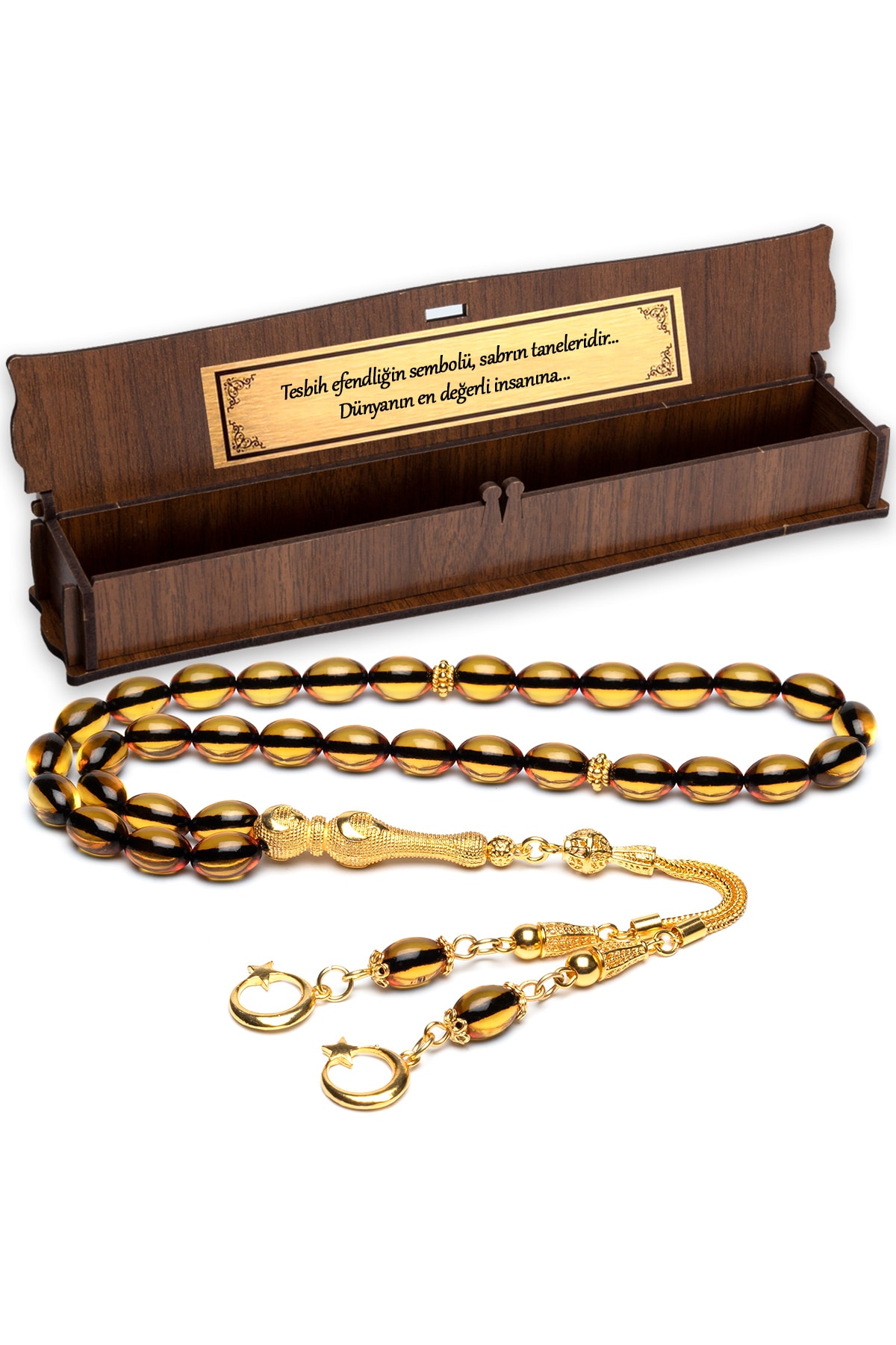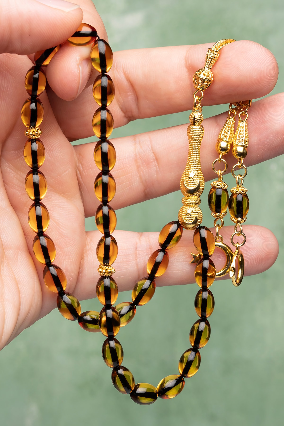 Altın Kaplama Gümüş Püskül Ateş Kehribar Tesbih
