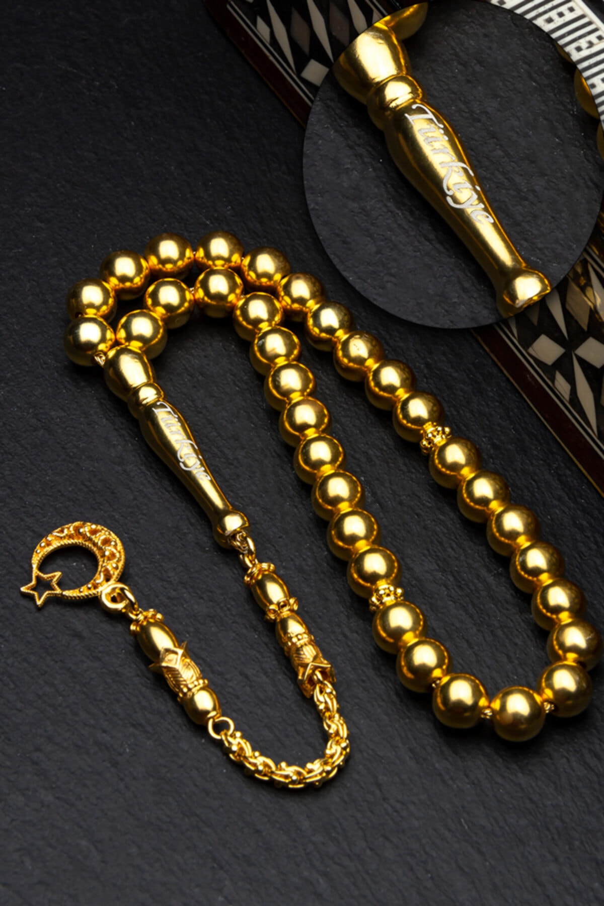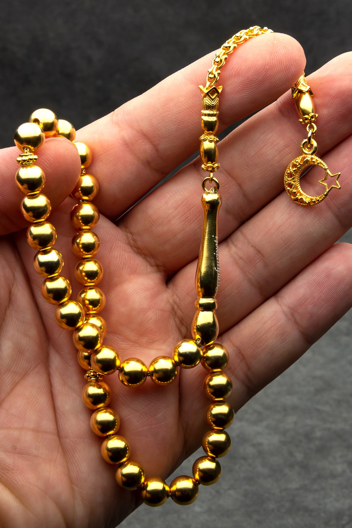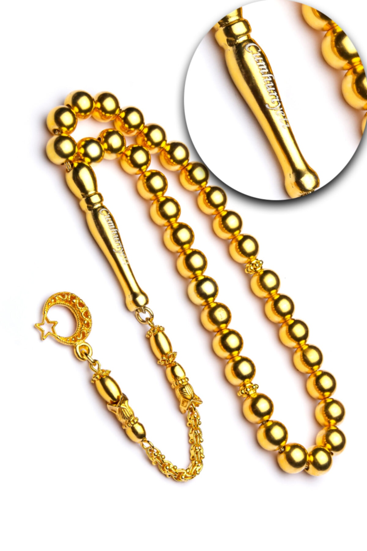 • Tesbih Malzemesi: Altın Kaplama 925 Ayar Gümüş • Tane Boyutu: 8mm • Kamçı (Püskül) Tipi: Altın Kaplama 925 Ayar Gümüş • Paket Içeriği: 1 Adet Tesbih, 1 Adet Şık Ahşap Tesbih Saklama Kutusu