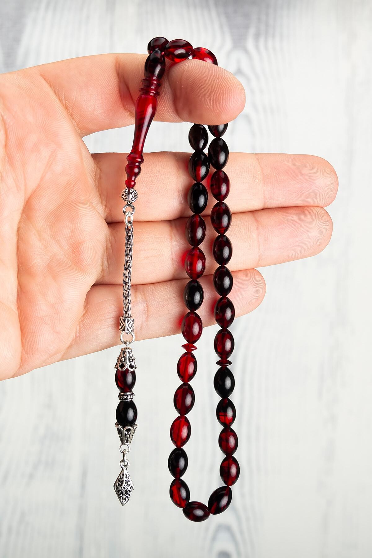 – Kehribar taşı, doğal güzelliği ve benzersiz dokusuyla dikkat çeken bir materyaldir. Tesbih yapımında kullanılan kehribar, her bir tanesi özenle işlenmiş ve kalite kontrolü yapılmış olup, uzun ömürlü kullanım sunar; – Gümüş kaplama detayları ile zenginleştirilmiş bu tesbih, hem şıklığı hem de dayanıklılığı bir arada sunar. Gümüş kaplama, tesbihin estetik görünümünü artırırken aynı zamanda paslanmaya karşı koruma sağlar; – Tesbihin püskül kısmı, gümüş kaplama ile süslenmiş olup, zarif ve modern bir tasarıma sahiptir. Bu detay, tesbihin genel estetiğini yükseltir ve kullanıcıya şık bir aksesuar deneyimi yaşatır;