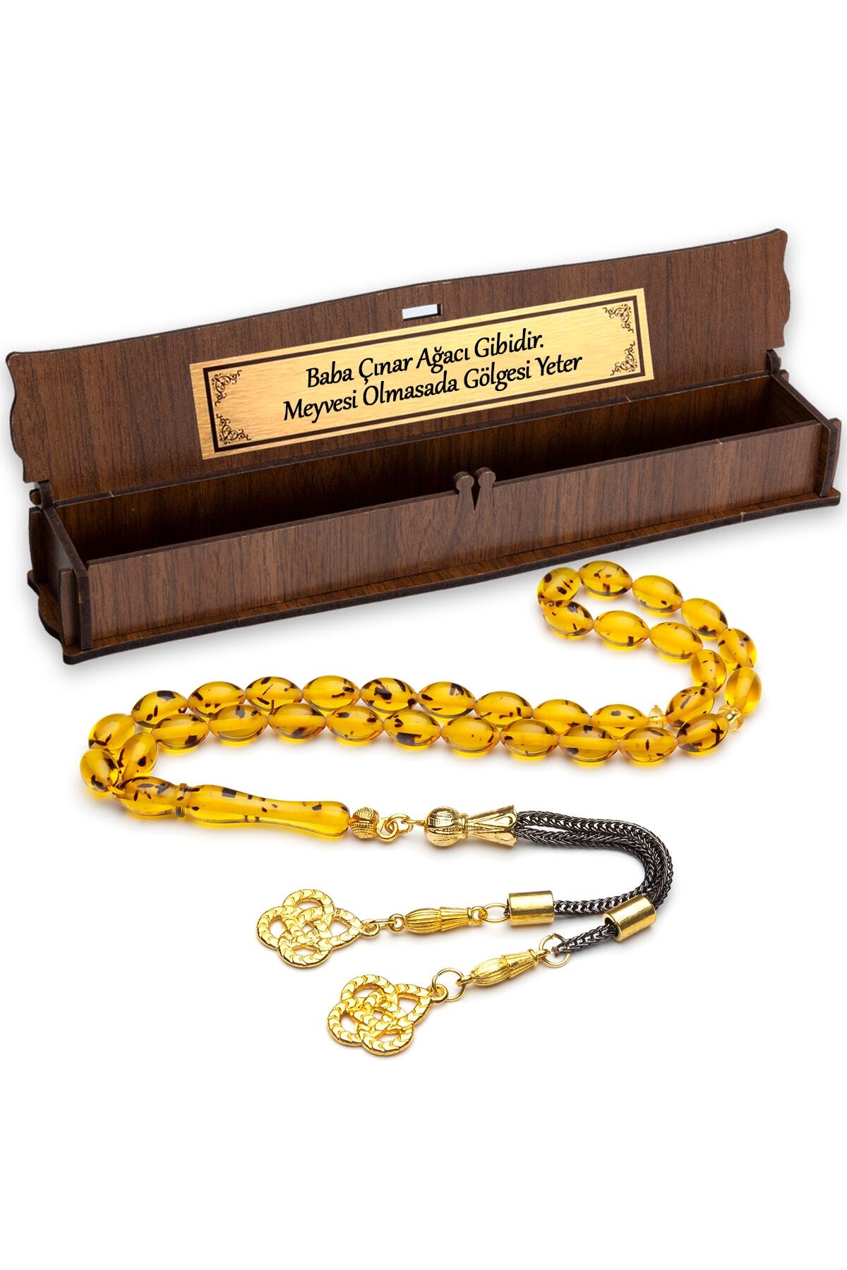 Baba Çınar Ağacı Gibidir Ahşap Kutuda Ateş Kehribar Tesbih