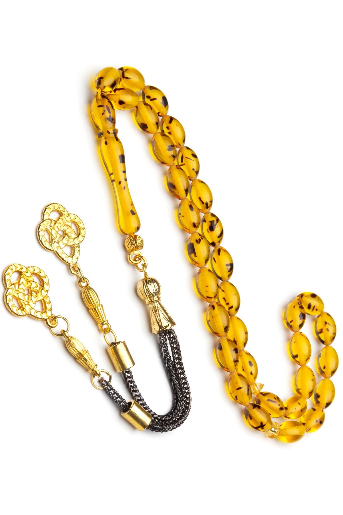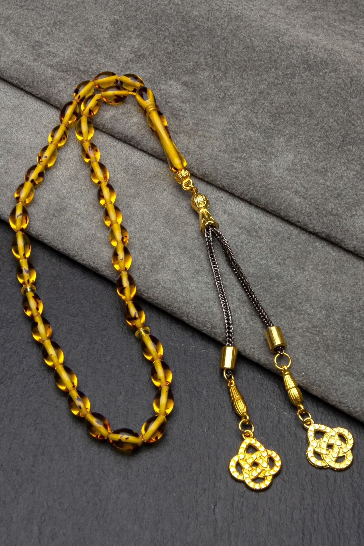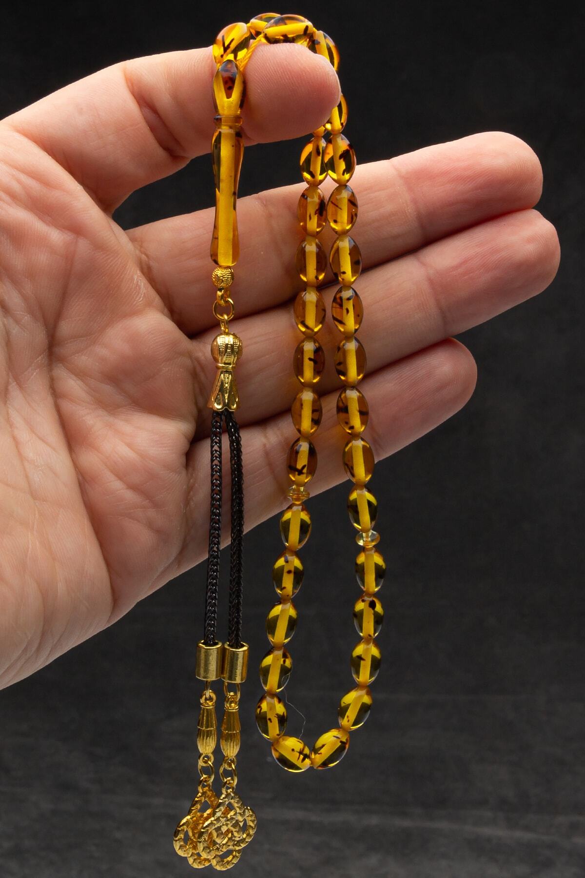 Altın kaplama detaylarıyla zenginleştirilmiş, şık ve zarif bir tasarıma sahip; Doğal kehribar taşı kullanılarak üretilmiş, her bir tanesi özenle seçilmiş ve işlenmiş; Ahşap kutusuyla birlikte gelen bu tesbih, hem estetik hem de kullanışlı bir hediye seçeneği sunar; Özel günlerde veya anlamlı anlarda tercih edilebilecek, duygusal ve anlamlı bir hediye alternatifi;