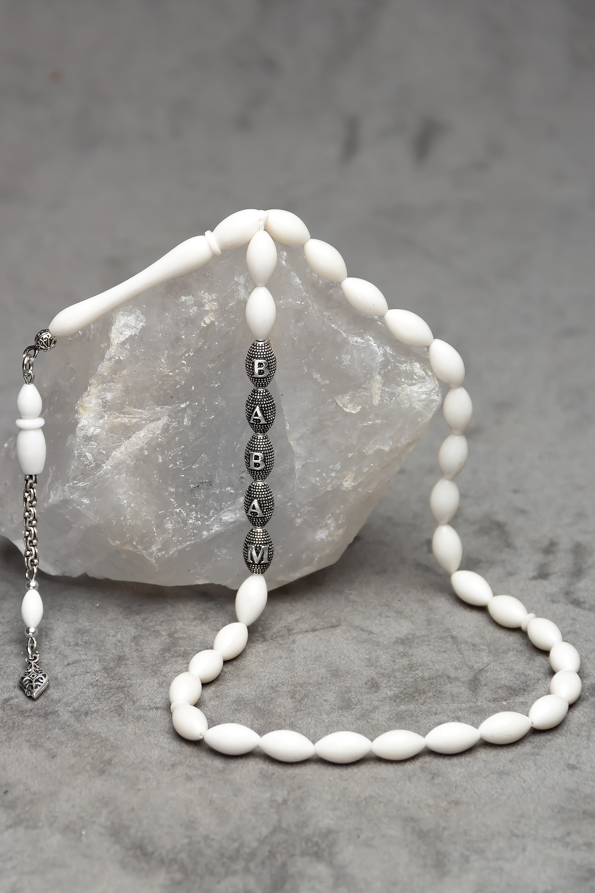 Babalara Özel Gümüş Aksesuarlı 7x11mm Deve Kemiği Tesbih Ahşap Kutulu
