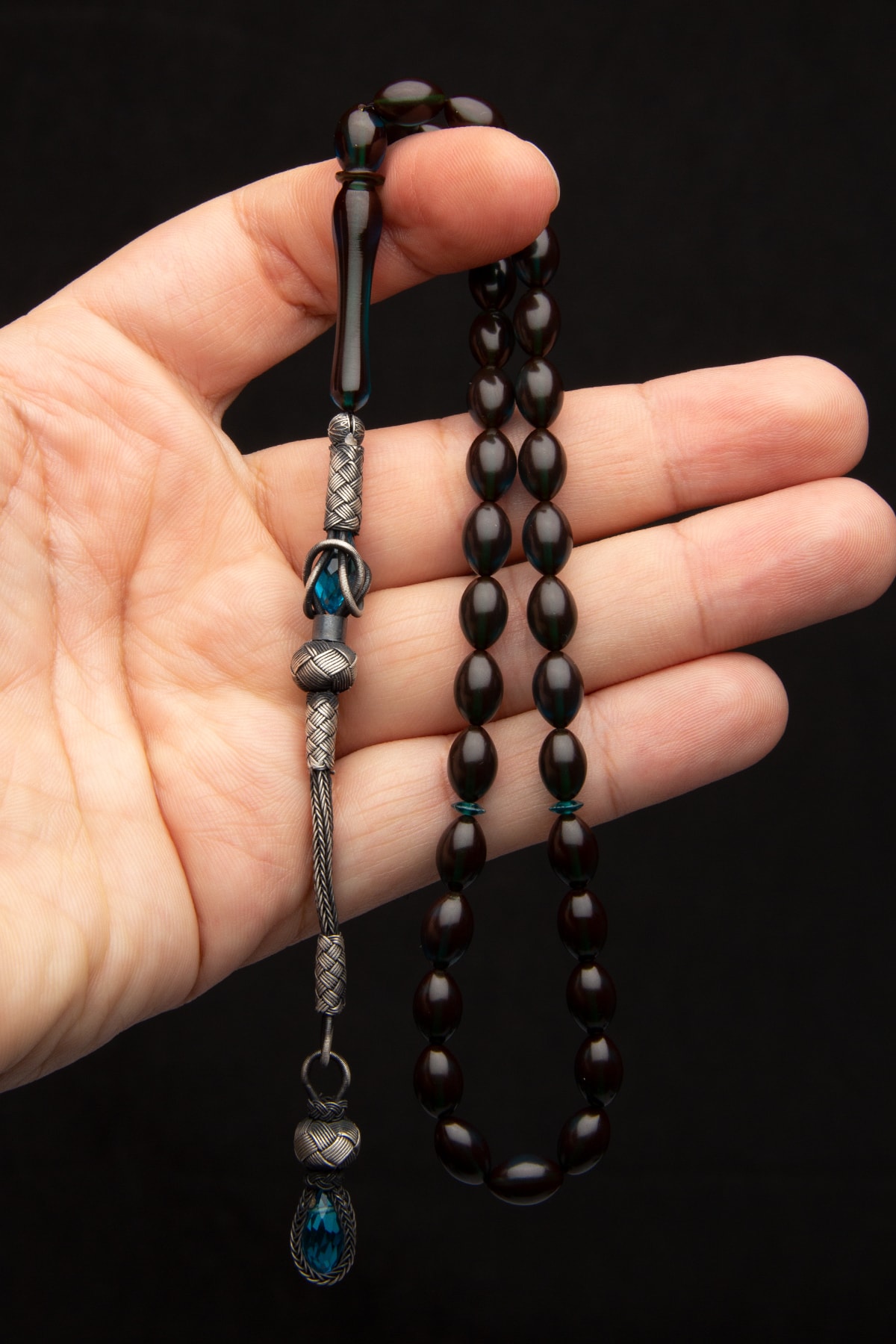 Gümüş Püsküllü 7x10mm Koyu Mavi Ateş Kehribar Tesbih Gümüş Püsküllü 7x10mm Koyu Mavi Ateş Kehribar Tesbih Orijinal fiyat: ₺7.526,87.Şu andaki fiyat: ₺6.021,50.