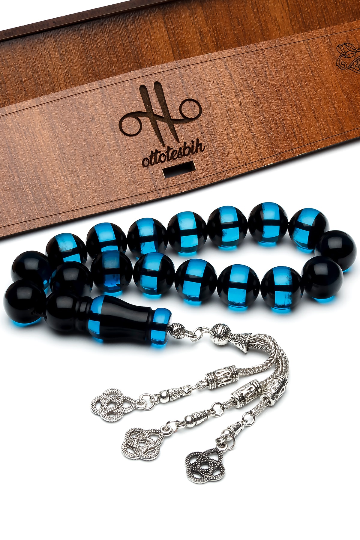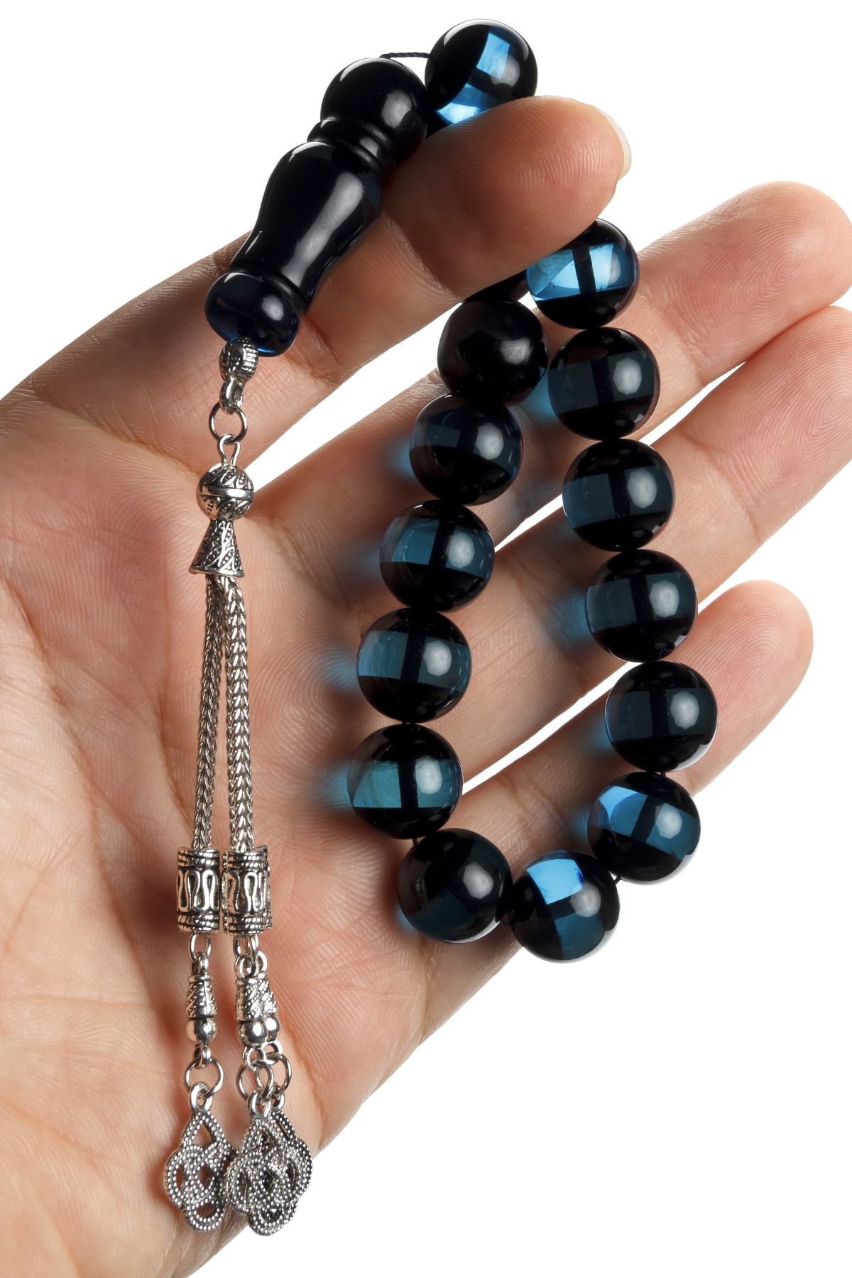 Gümüş kaplama detaylarıyla zenginleştirilmiş, şık ve modern bir tasarıma sahip; Doğal kehribar taşı kullanılarak üretilmiş, her bir tesbih tanesi özenle işlenmiştir; 14mm boyutundaki maskot boyu, rahat kullanım ve kolay taşınabilirlik sağlar; Gece mavisi rengiyle dikkat çeken bu tesbih, özel günlerde veya günlük kullanım için idealdir;