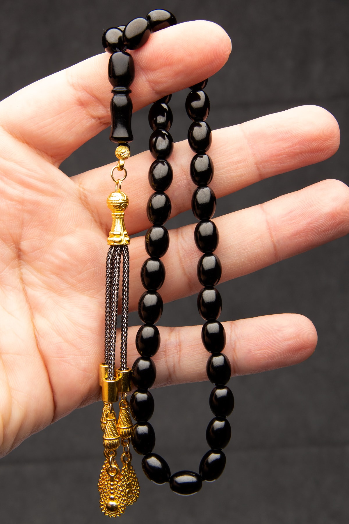 Erkek 6×7.5mm Kapsül Kesim Oltu Tesbih, Bilek Boy Oltu Tespih