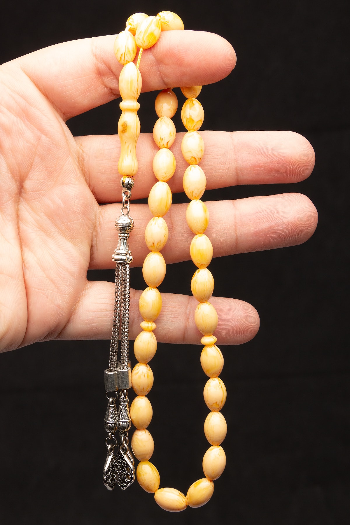 Erkek 7x11mm Yoğurtlu Hareli Beyrut Damlası Toz Kehribar Tesbih