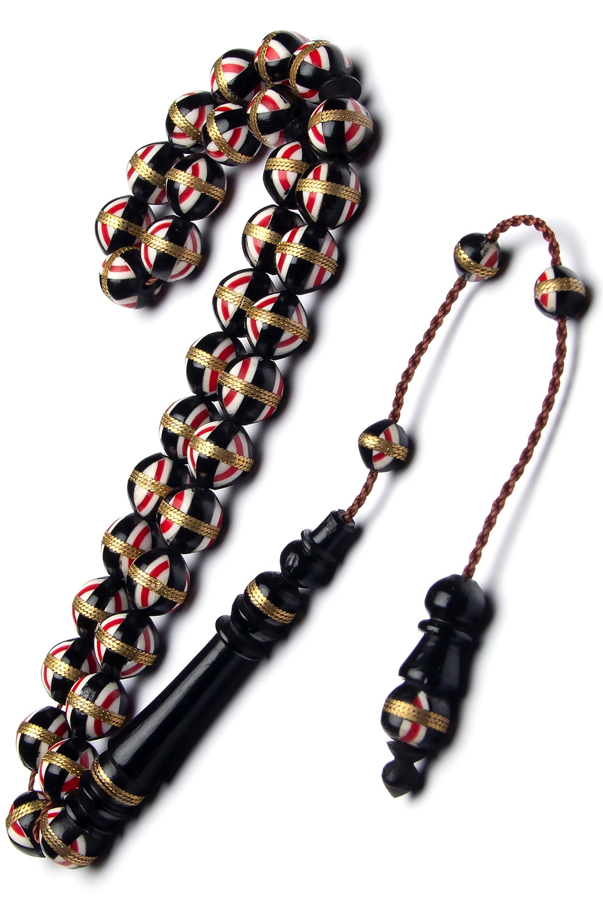 Erkek 8mm Kırmızı Beyaz Mine Işlemeli Sarmal Kuka Tesbih