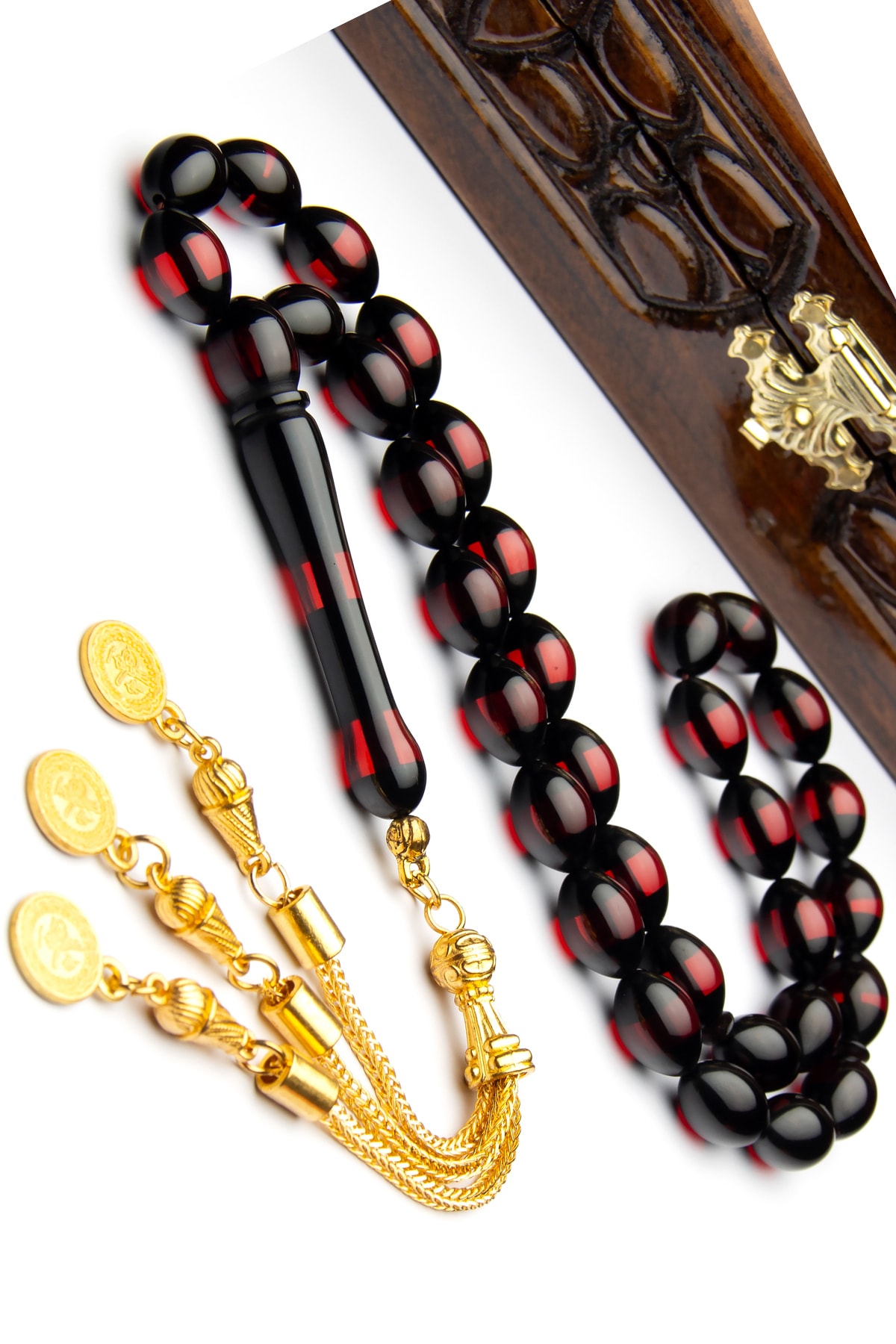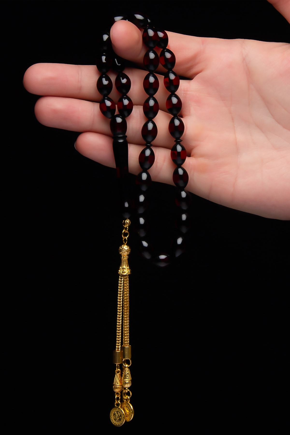 Kehribar taşı, doğanın sunduğu eşsiz güzellikler arasında yer alan nadide bir taştır ve tesbih yapımında sıklıkla kullanılır.; Gümüş kaplama detayı ile zenginleştirilmiş bu tesbih, hem dayanıklı hem de şık bir görünüm sunar.; Arpa kesim tasarımı, her bir tanesinin kendine özgü şekillerde işlenmesini sağlar ve bu da koleksiyonunuzda benzersiz parçalar oluşturmanıza olanak tanır.; Kan kırmızısı sürme rengi, göz alıcı bir parlaklık katarken, tesbihin estetik değerini artırır.; Bu özel tasarım tesbih, hem günlük kullanım için idealdir hem de özel günlerde hediye olarak tercih edilebilir.;