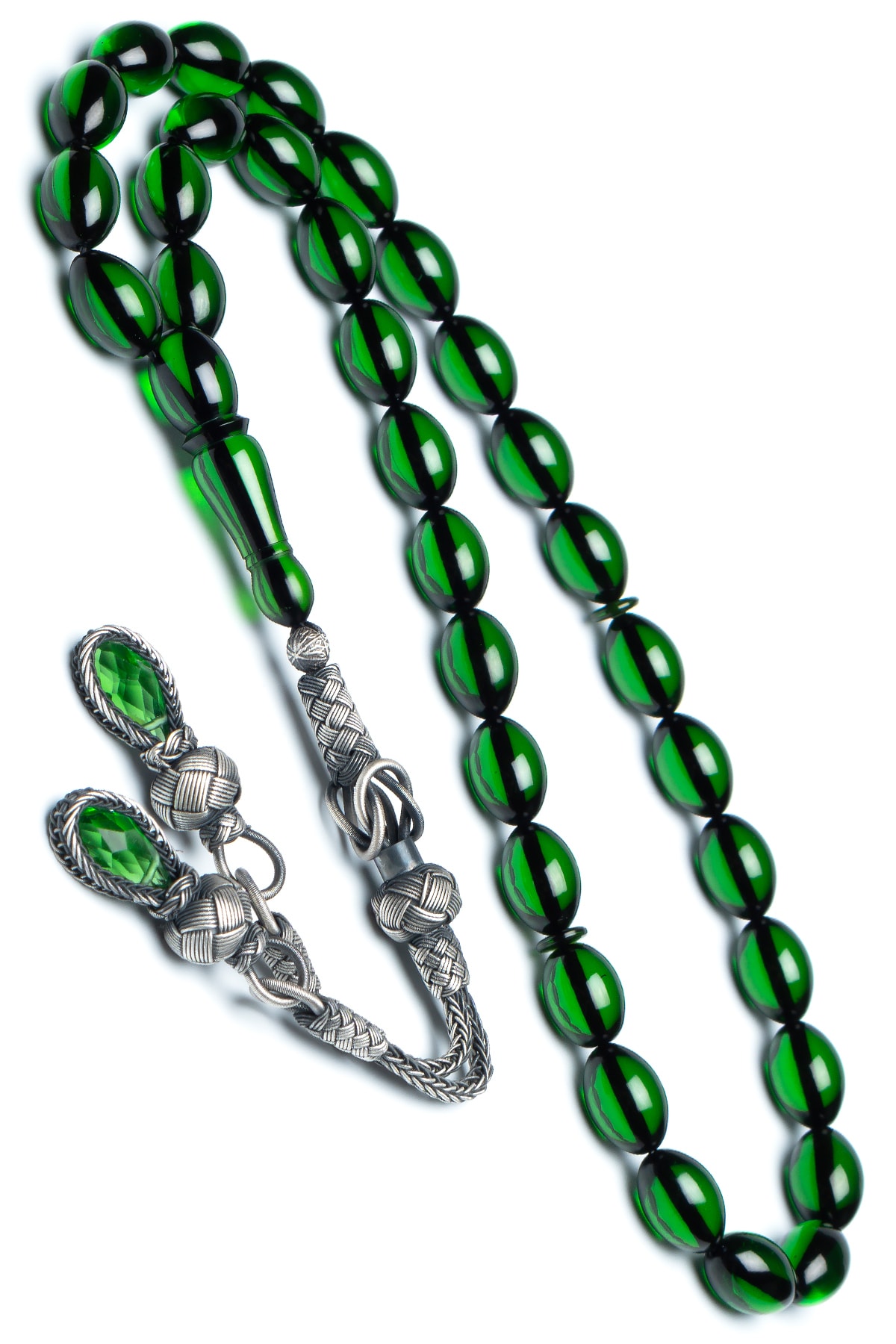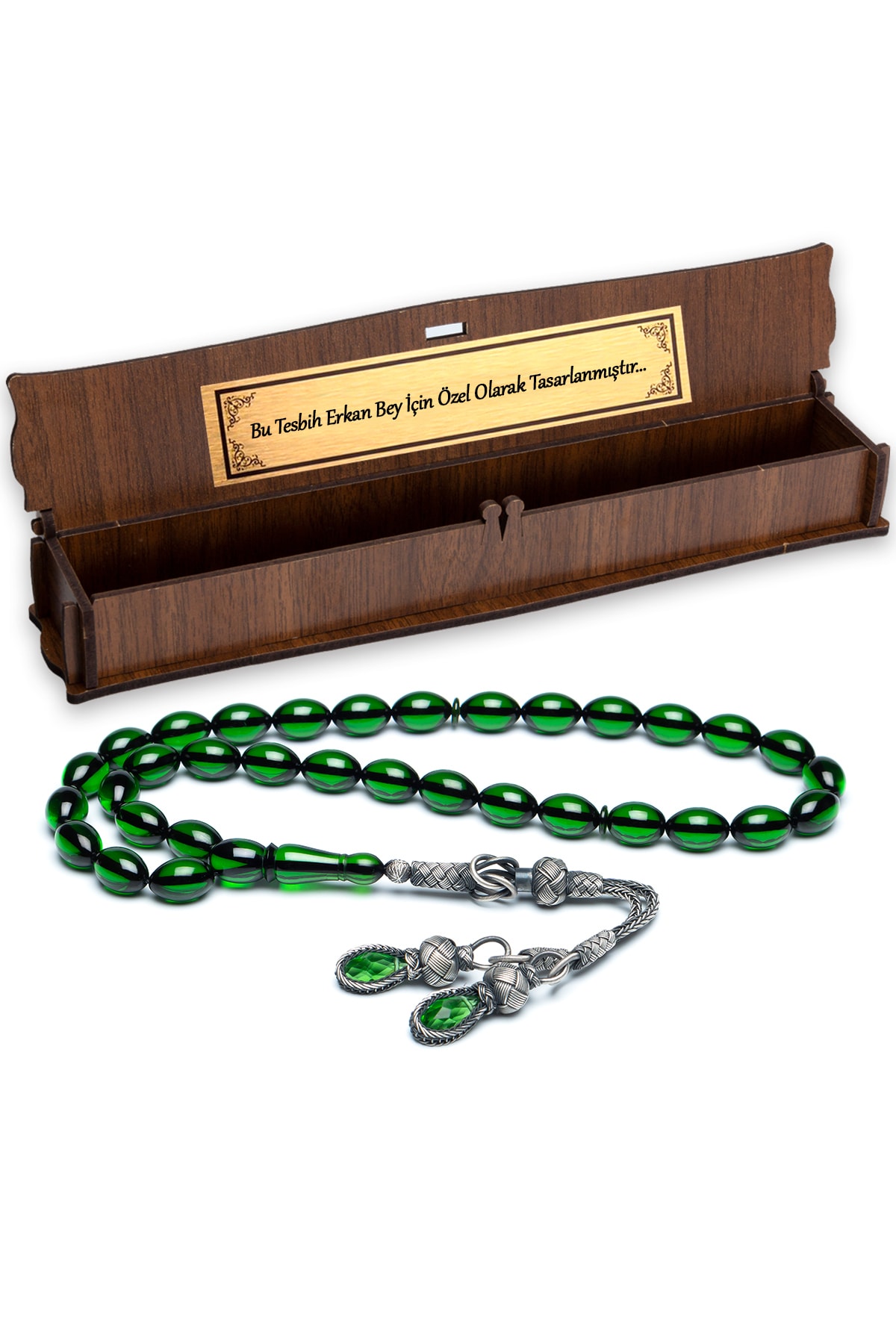 Erkek Gümüş Kazaz Püskül Ateş Kehribar Tesbih Ahşap Kutulu
