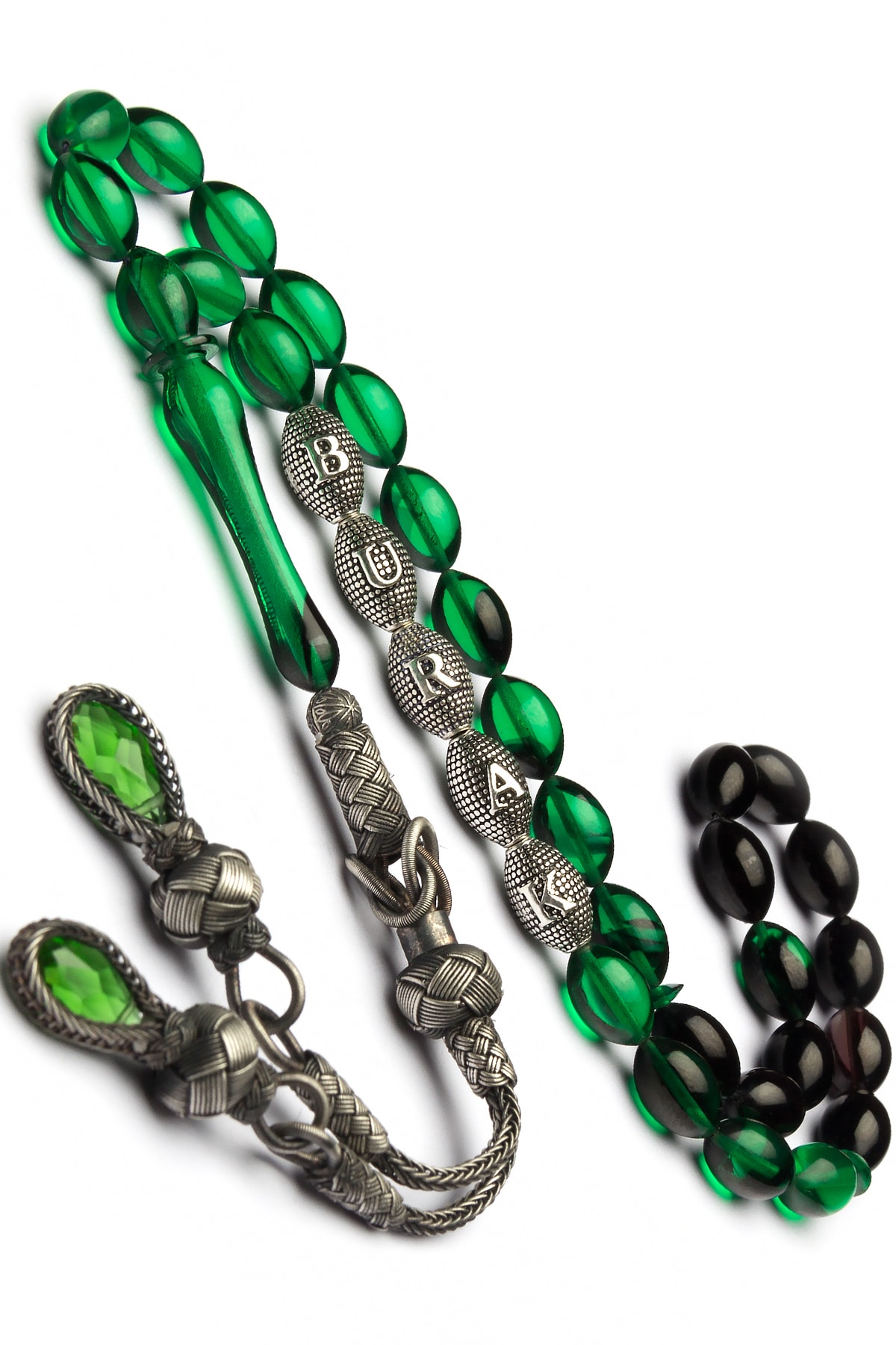 Erkek Gümüş Kazaz Püsküllü Gümüş Harfli Ateş Kehribar Tesbih, Isimli Tesbih