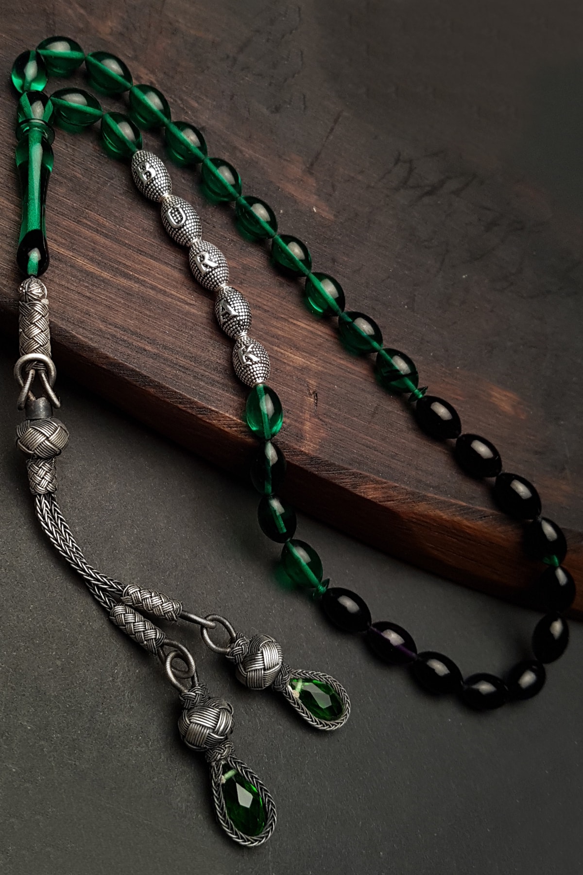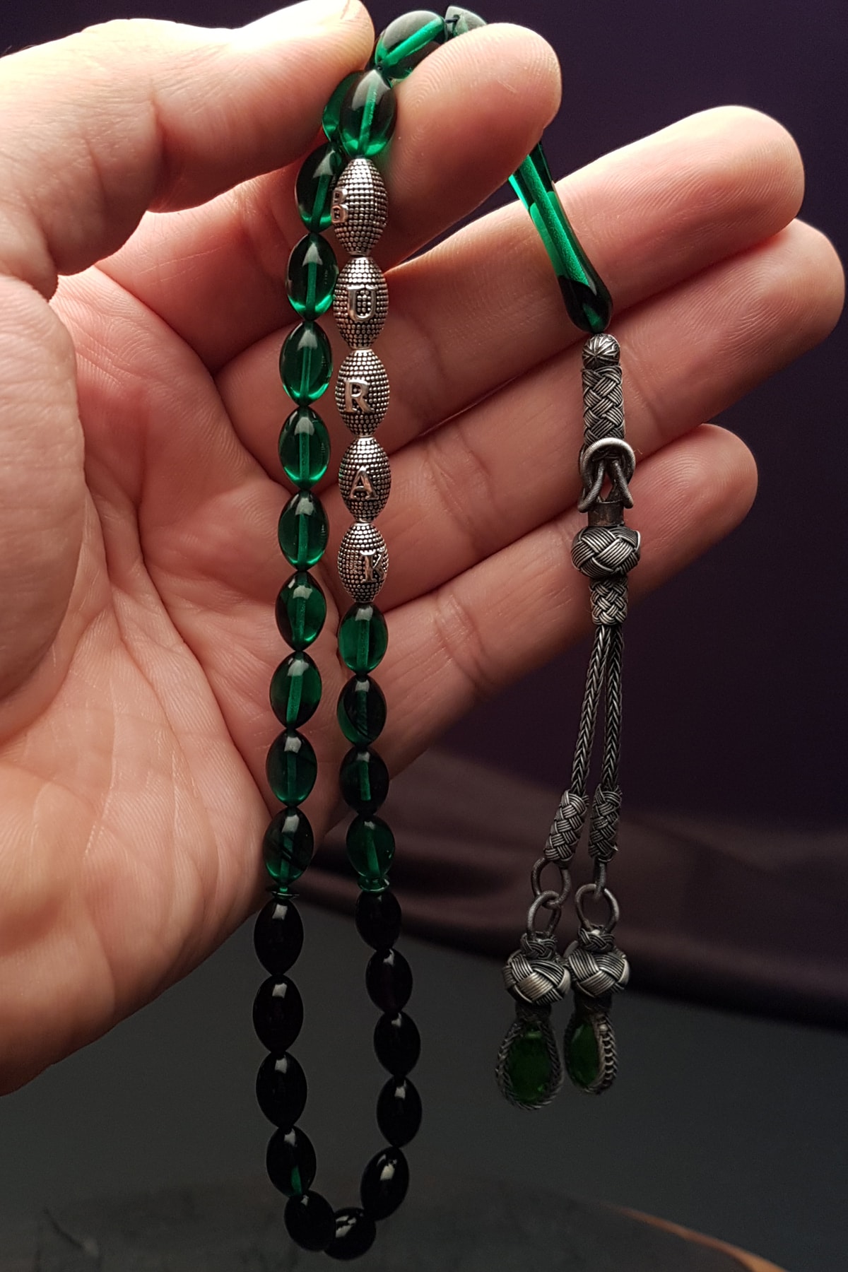 Ateş kehribar taşı, doğal güzelliği ve benzersiz desenleriyle dikkat çeker, her bir tesbih tanesi ayrı bir sanat eseri gibi görünür; Gümüş kaplama detayları ile zenginleştirilmiş tasarım, hem şıklığı hem de dayanıklılığı bir arada sunar; İsimli tesbih özelliği sayesinde, kişisel anlam ve değer taşıyan özel bir hediye seçeneği olarak öne çıkar; Püskül detayları ile zenginleştirilmiş tasarım, klasik ve modern çizgileri birleştirerek estetik bir görünüm sağlar;