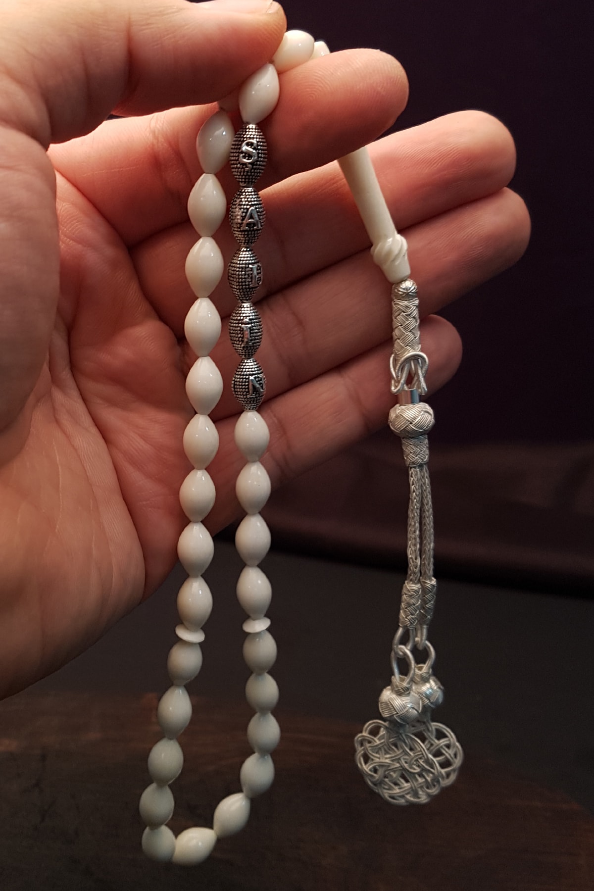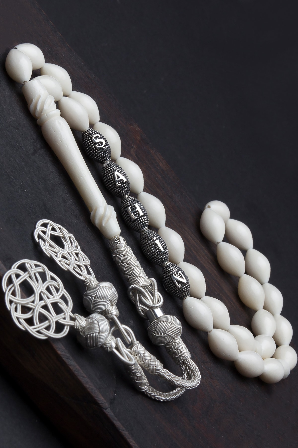 Erkek Gümüş Kazaz Püsküllü Gümüş Harfli Deve Kemiği Tesbih
