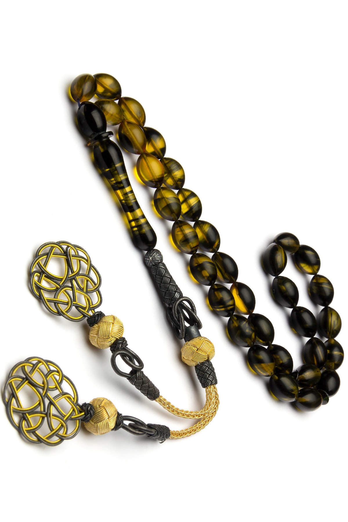 Erkek Gümüş Kazaz Püsküllü Sarı Siyah Renk Süzmesi Ateş Kehribar Tesbih