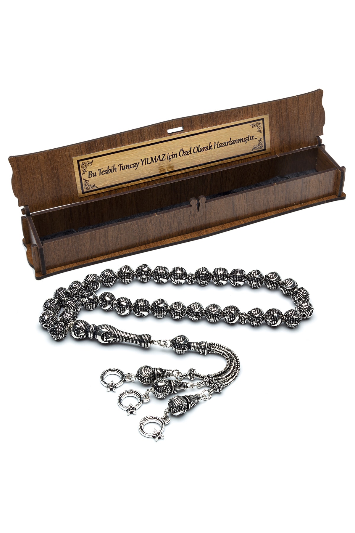 Erkek Gümüş Püsküllü Ayyıldız Model 7mm Küre Kesim Gümüş Tesbih