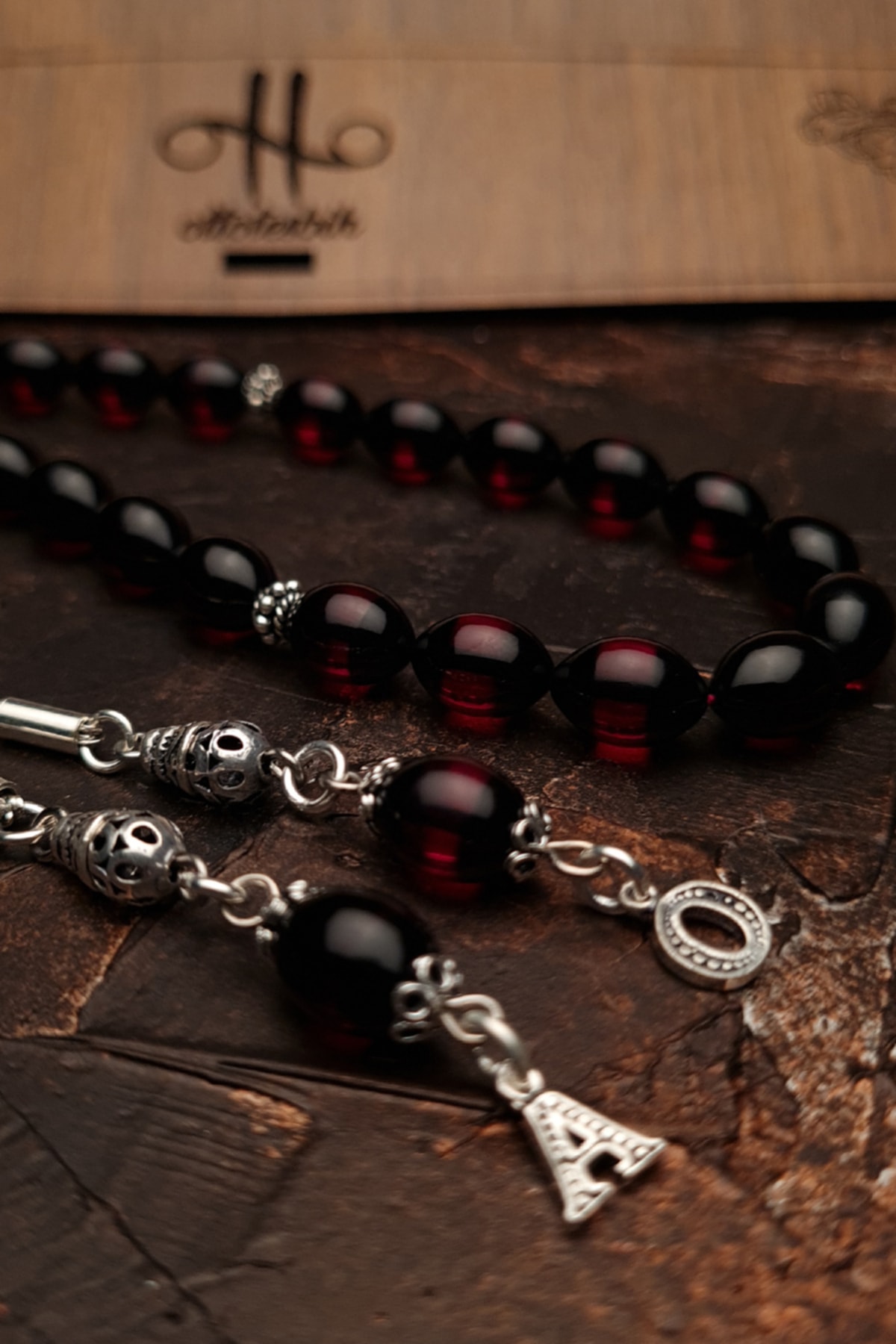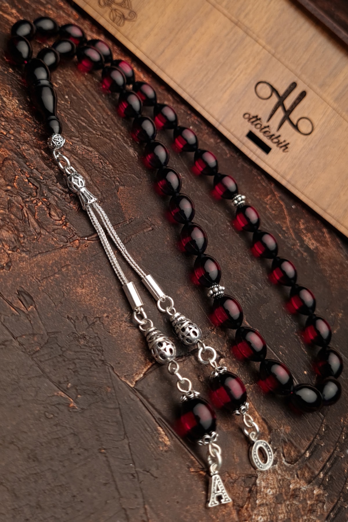 Erkek Harf Püsküllü Kırmızı Sürmeli Ateş Kehribar Tesbih