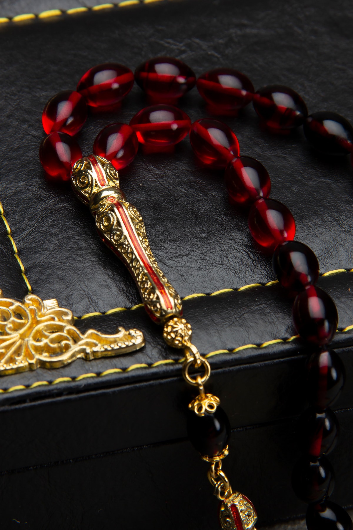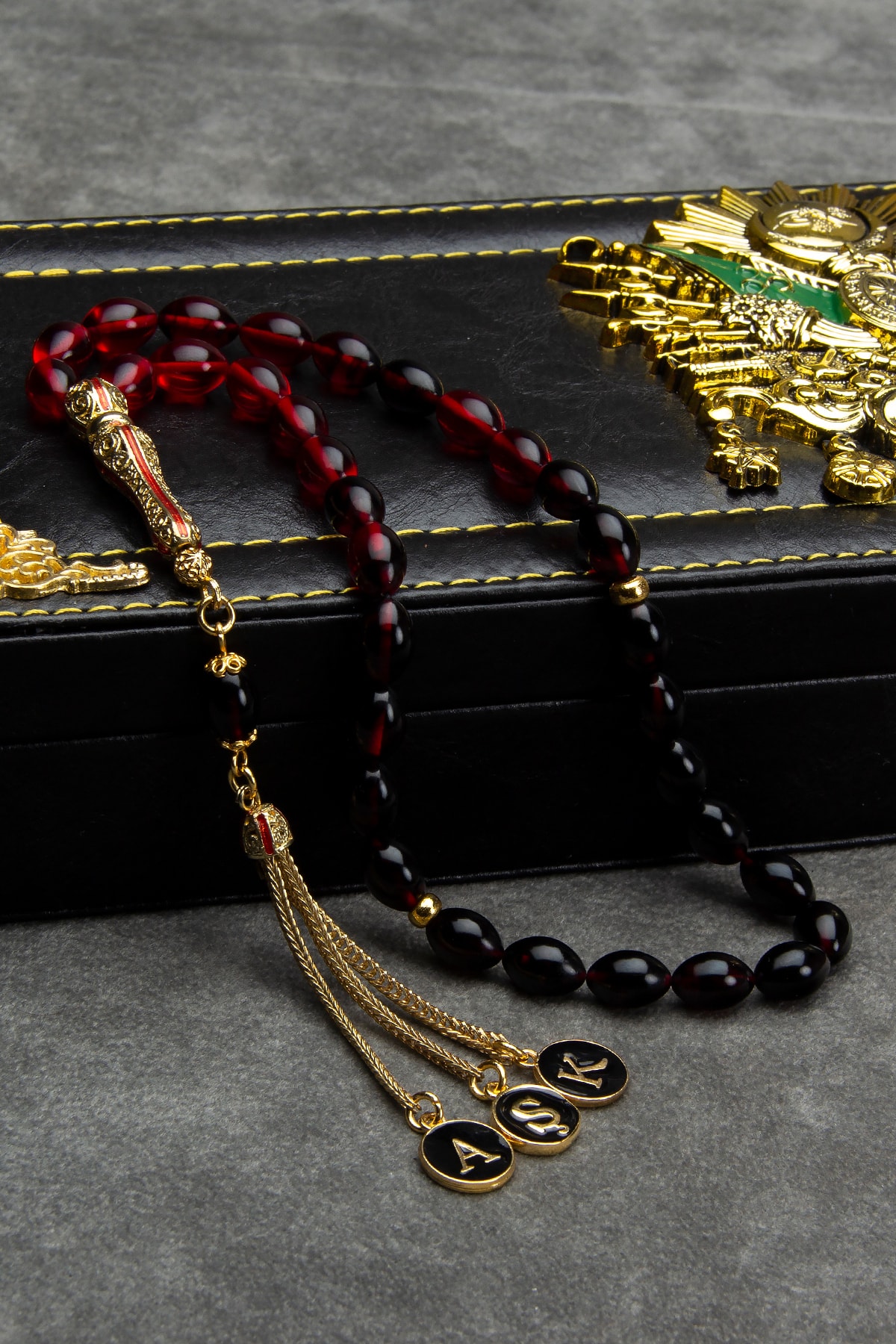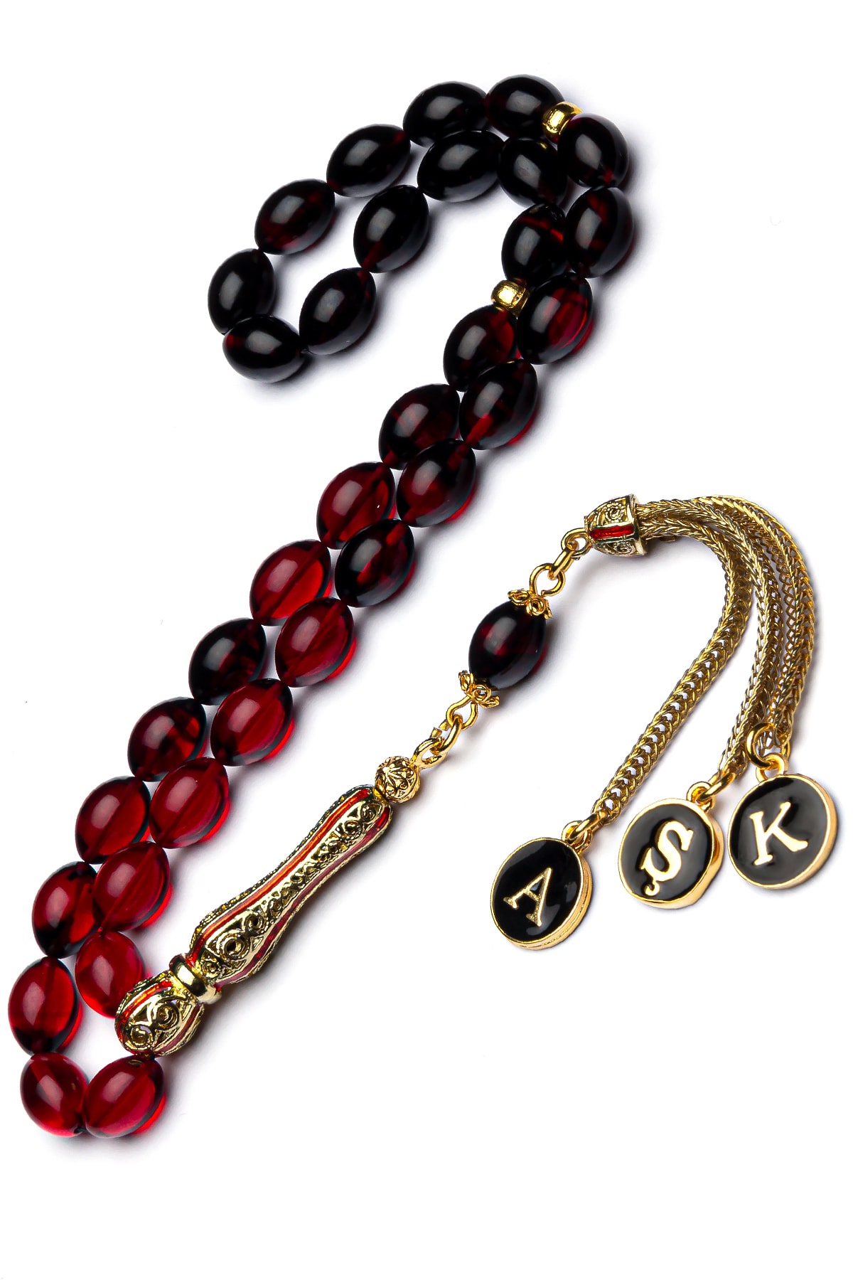 Erkek Hediye Telkari Imame Ve Püsküllü Kırmızı Siyah Ateş Kehribar Tesbih