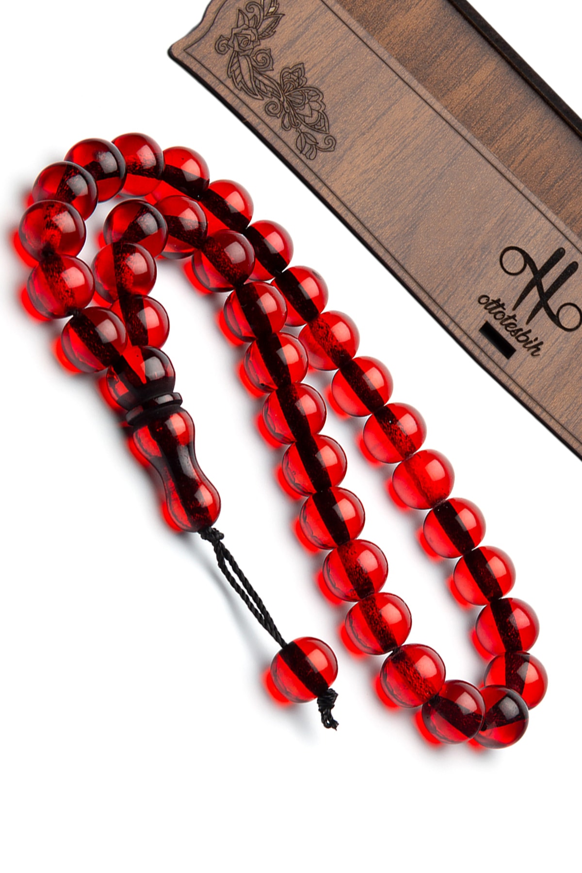 Erkek Hediyelik 10×11.5mm Ateş Kırmızı Toz Kehribar Tesbih