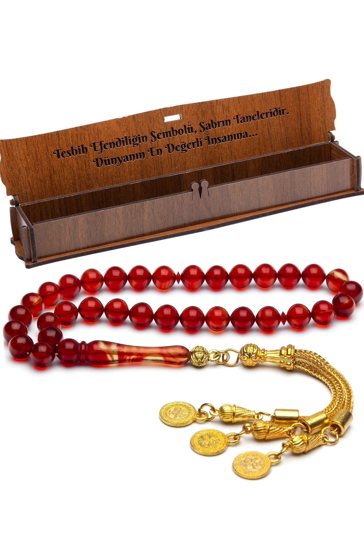 Erkek Hediyelik 7.5mm Küre Kesim Bilek Boy Ateş Kehribar Tesbih