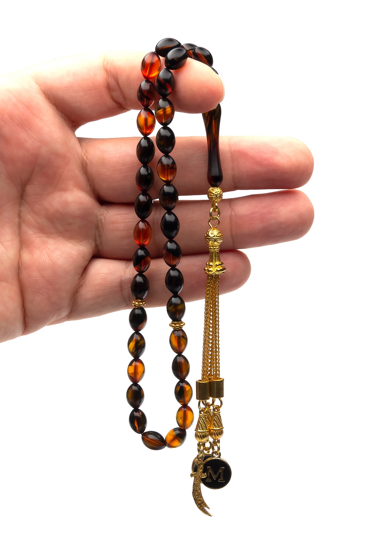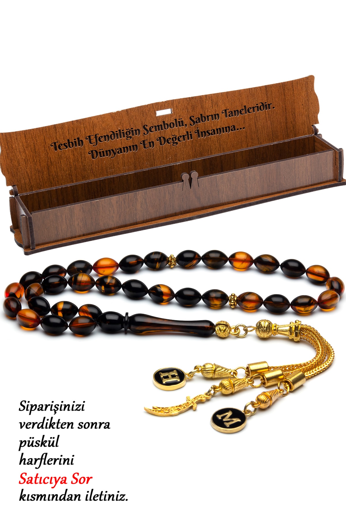 Erkek Hediyelik 7x10mm Sarı Siyah Renk Süzmesi Ateş Kehribar Tesbih