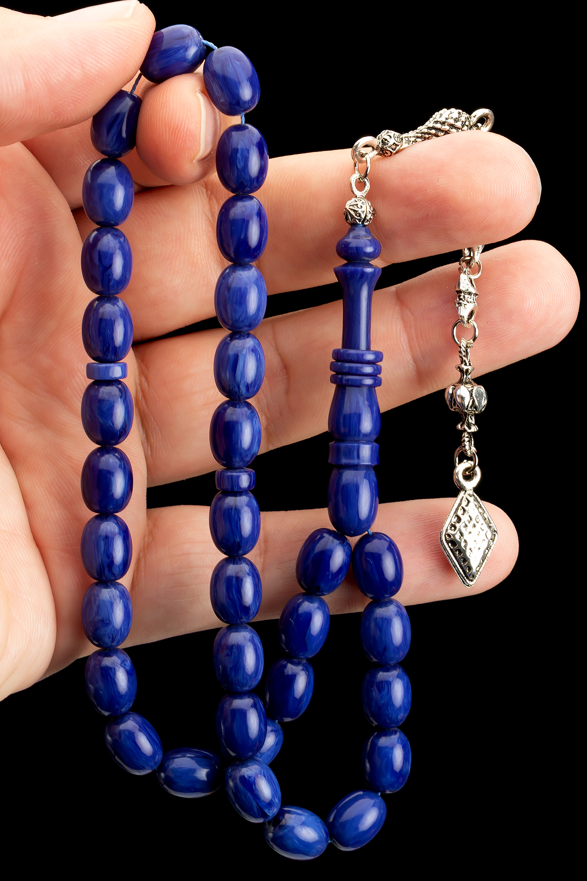 Erkek Hediyelik 8x11mm Katalin Tesbih, Kanayan Bağa Tesbih Lacivert