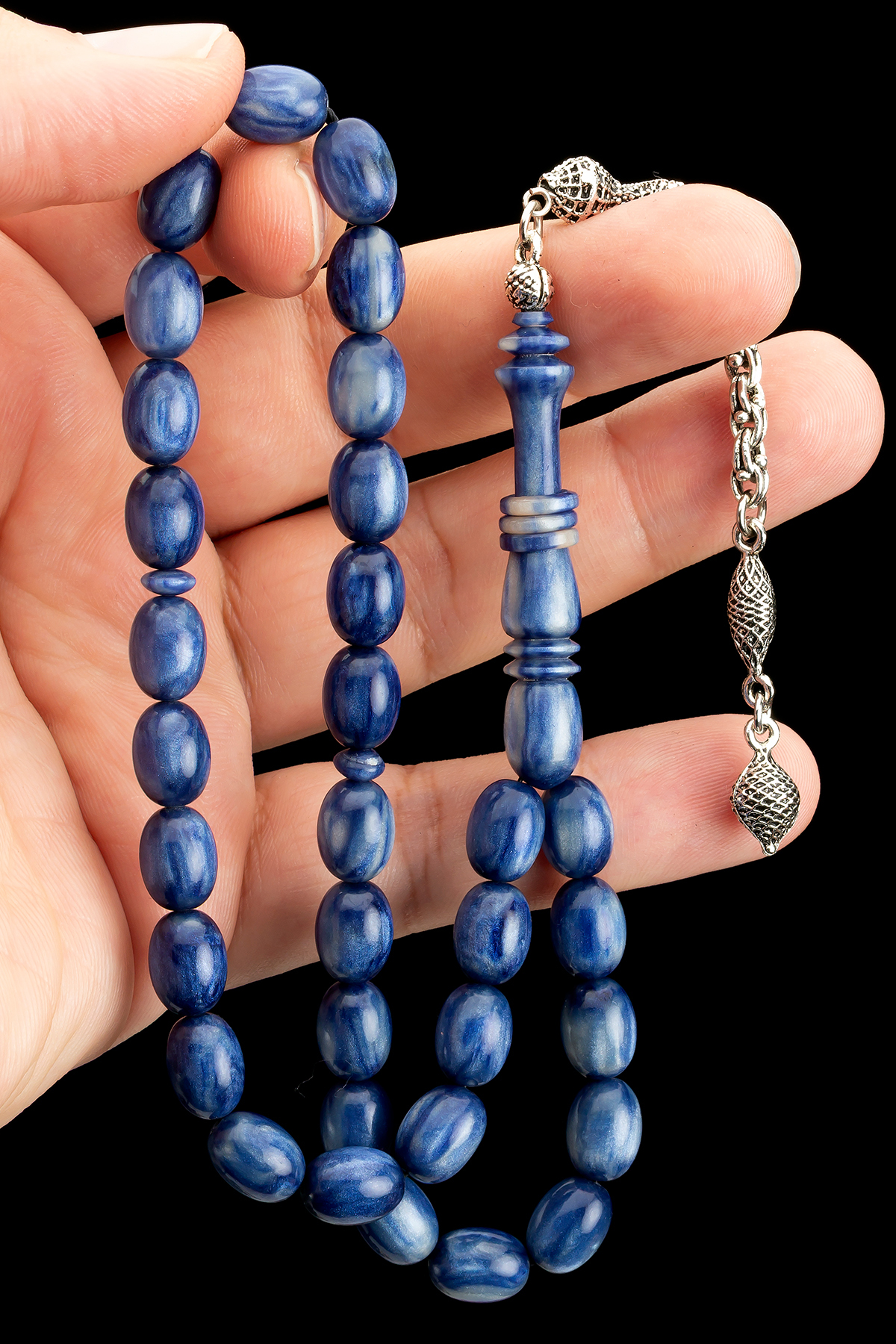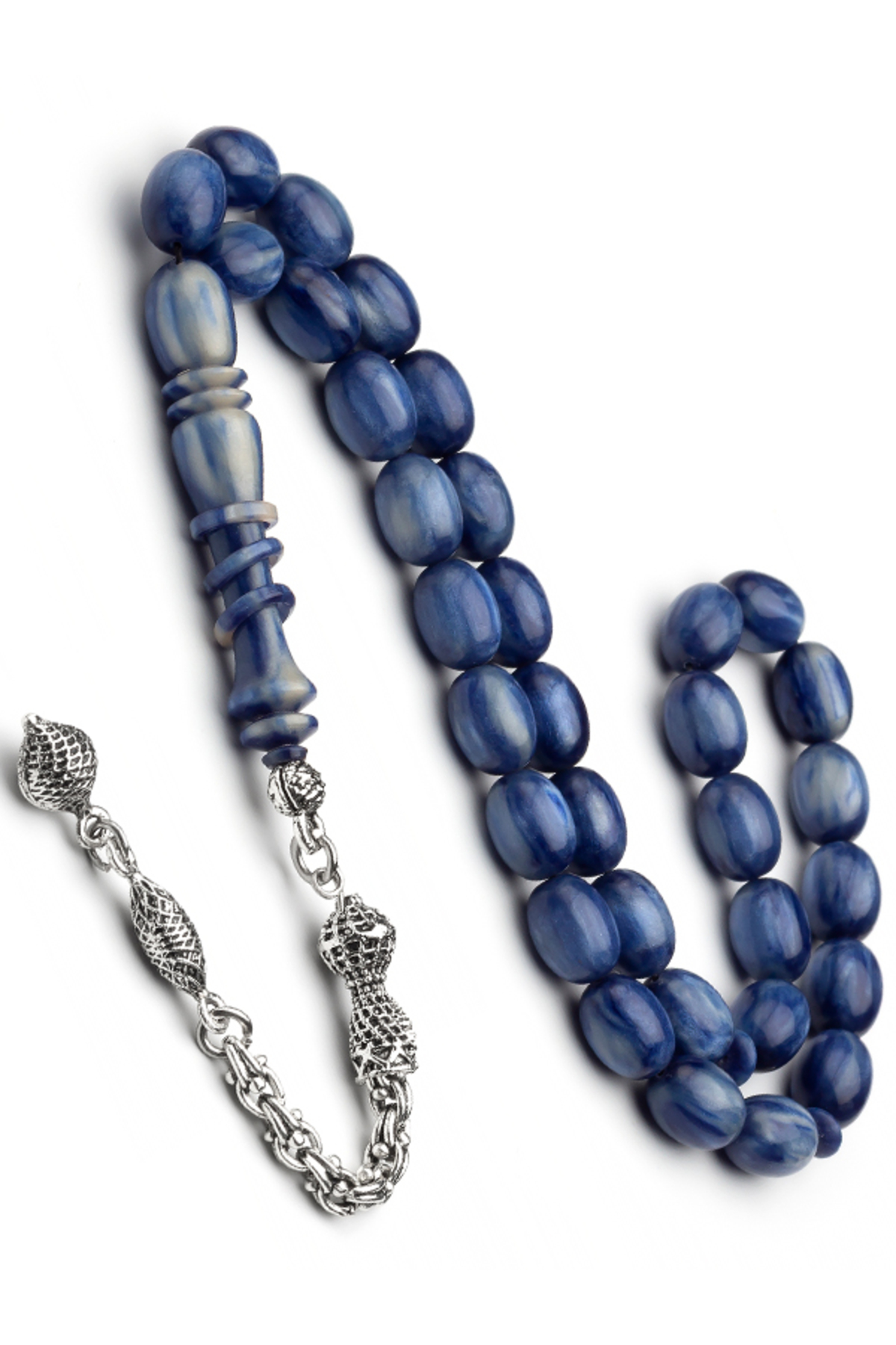 Erkek Hediyelik 8x11mm Katalin Tesbih, Kanayan Bağa Tesbih Mavi Beyaz