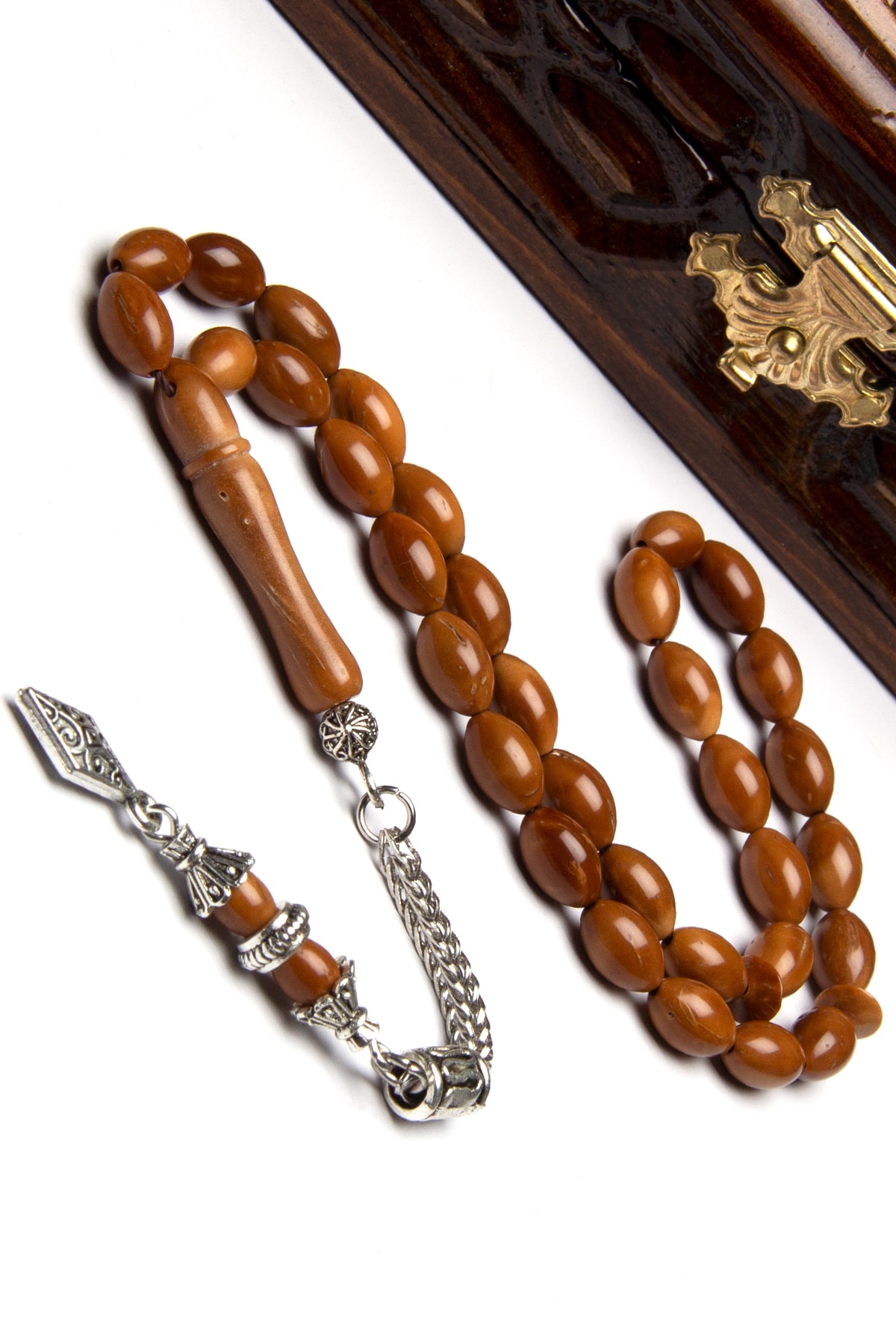 Tesbih malzemesi: Kuka ; Tane boyutu: 6x9mm ; Kamçı (püskül) tipi: Alpaka, metal ; Paket ıçeriği: 1 adet tesbih, 1 adet şık hediye paketi ;