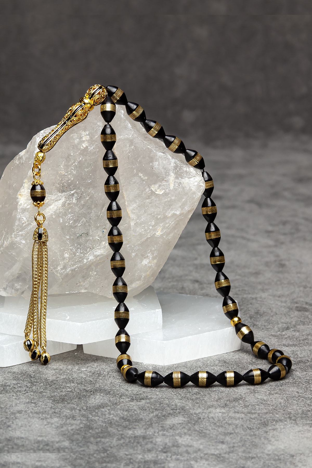 Altın kaplama malzemesiyle üretilmiş, uzun ömürlü ve şık bir görünüm sunar; Ağaç taşı kullanımı, doğal ve otantik bir dokunuş katarken, her kullanımda benzersiz bir deneyim sağlar; İmame püskül detayı ile zenginleştirilmiş tasarım, modern ve estetik bir görünüm kazandırır; Kuka işlemeli detaylar, geleneksel el işçiliğini modern tasarım anlayışıyla buluşturarak göz alıcı bir estetik sunar;