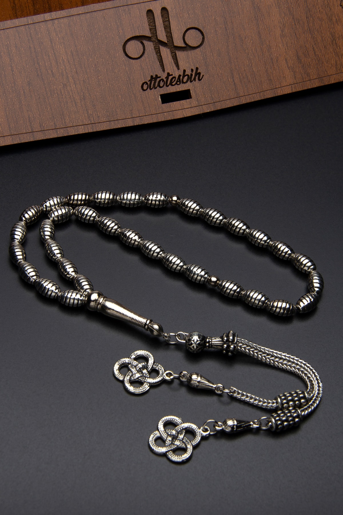 Tesbih Malzemesi: Metal Tane Ebatı: 5.5x9mm Kamçı (Püskül) Tipi: Alpaka, Metal Paket Içeriği: 1 Adet Tesbih 1 Adet Şık Hediye Paketi