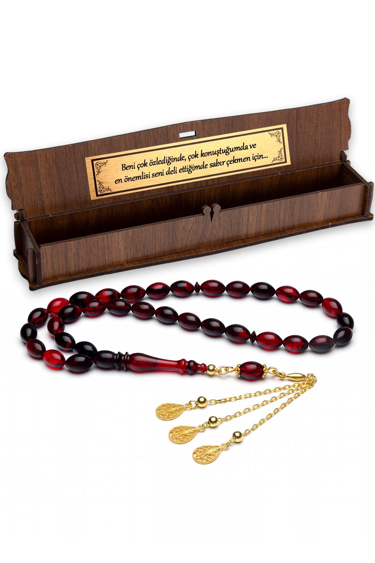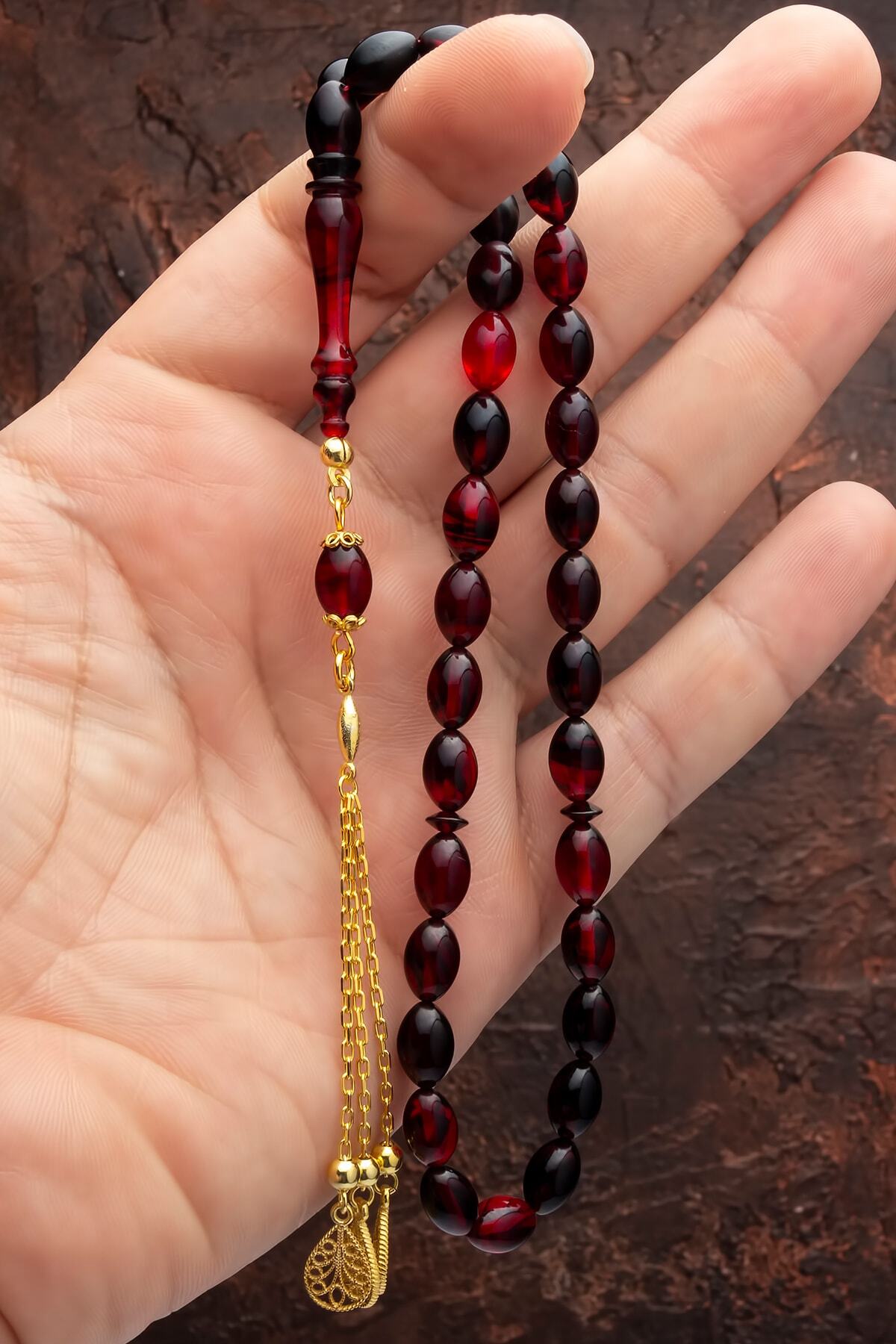 – Ateş kehribar taşı, doğal güzelliği ve benzersiz dokusuyla dikkat çeken bir materyaldir; – Altın kaplama detayları, bu tesbihin şıklığını artırarak özel günlerdeki anlamlı anları daha da unutulmaz kılar; – Arpa kesim tasarımı, klasik ve zamansız bir görünüm sunarken, her tür kıyafetle uyum sağlar; – Püskül detayları, bu tesbihin estetik değerini yükselterek zarif bir dokunuş katmaktadır;