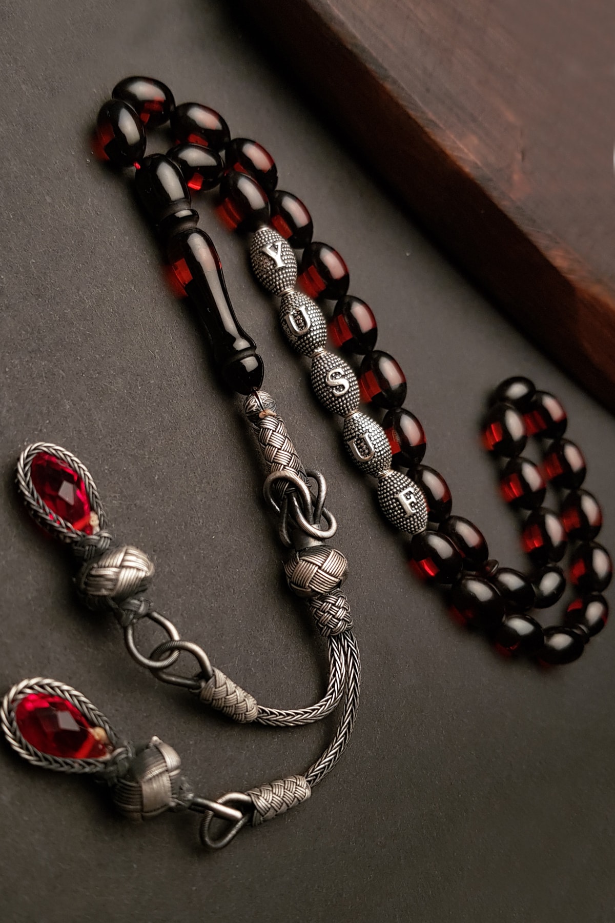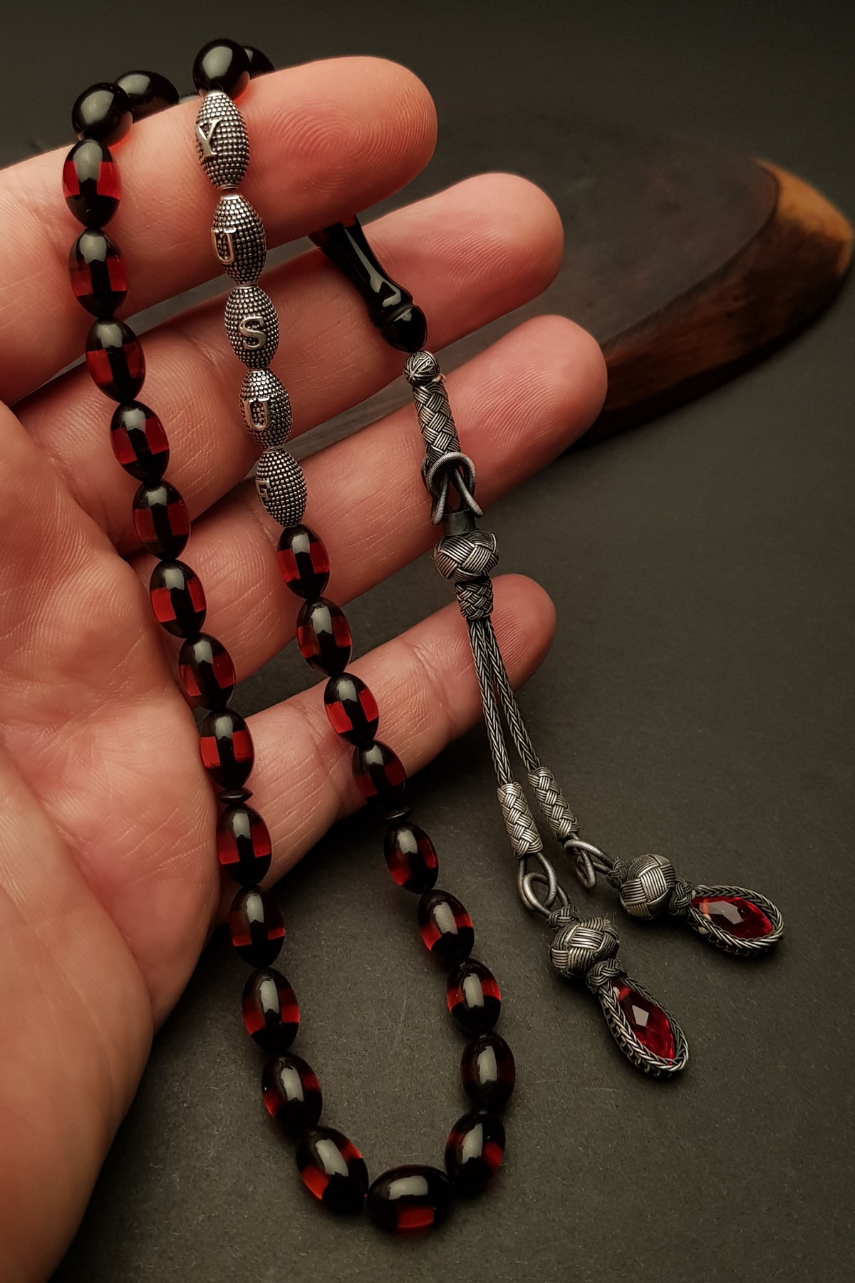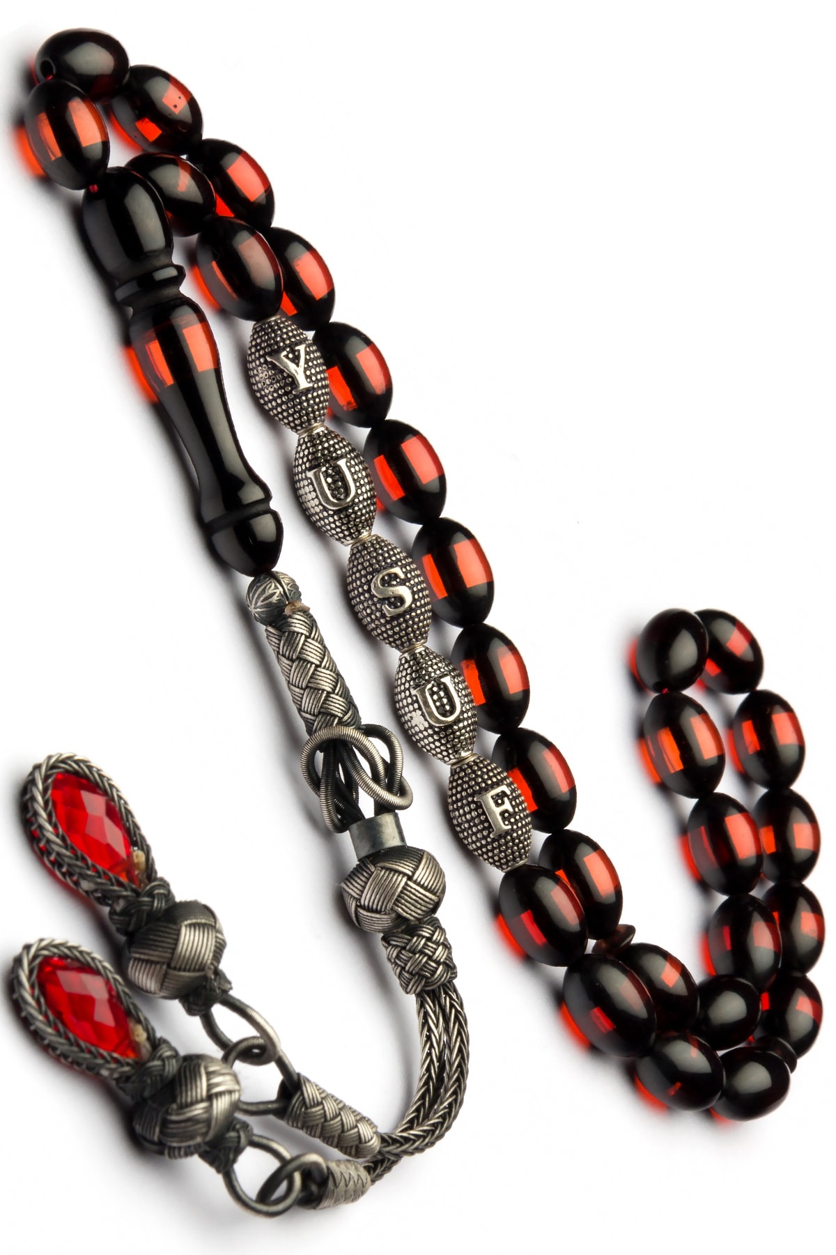 Kehribar taşı, doğal güzelliği ve benzersiz dokusuyla dikkat çeken bir materyaldir; Bu tesbih, kehribarın sıcak ve doğal tonlarını taşıyan tasarımıyla öne çıkar; Gümüş kaplama detayları, tesbihin şıklığını artırarak hem göz alıcı bir görünüm sunar hem de uzun süreli kullanım için dayanıklılık sağlar; İsimli tasarım özelliği sayesinde, sevdiklerinize özel bir hediye olarak tercih edilebilir; Her bir tespih, kişisel bir dokunuşla kişiselleştirilmiş bir hediye seçeneği sunar; Püskül detayları, klasik ve zarif bir görünüm kazandırarak bu tespihi özel günlerde veya günlük kullanım için ideal bir aksesuar haline getirir;