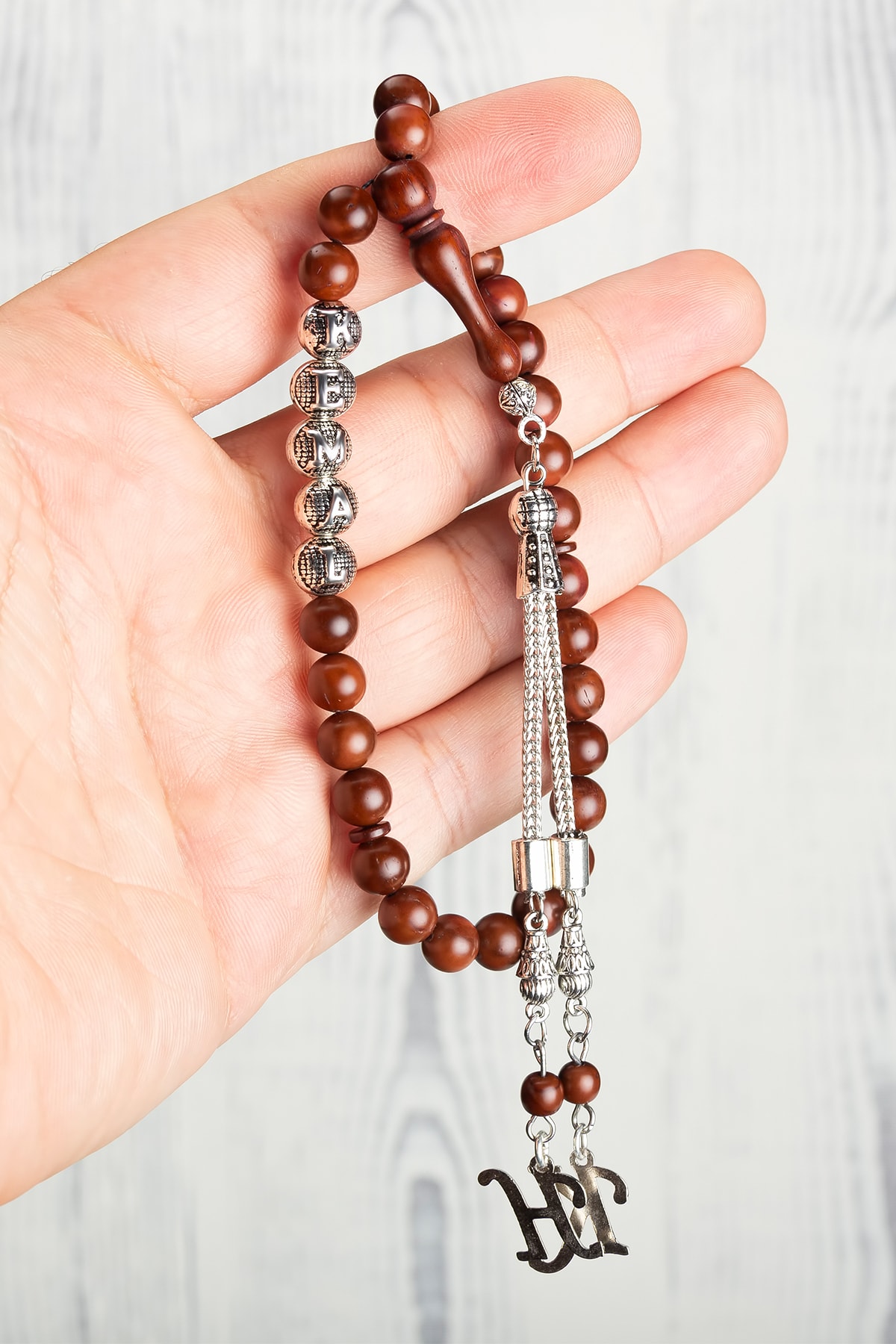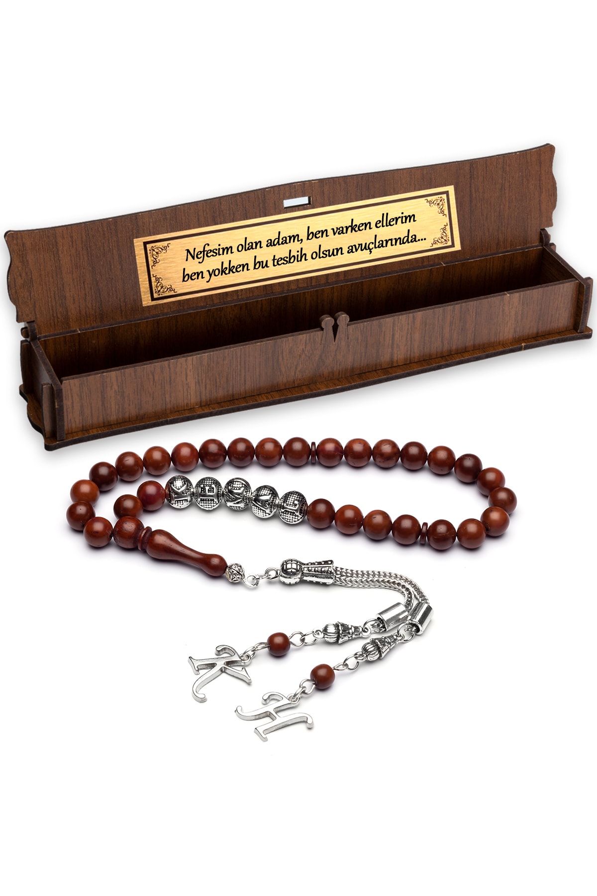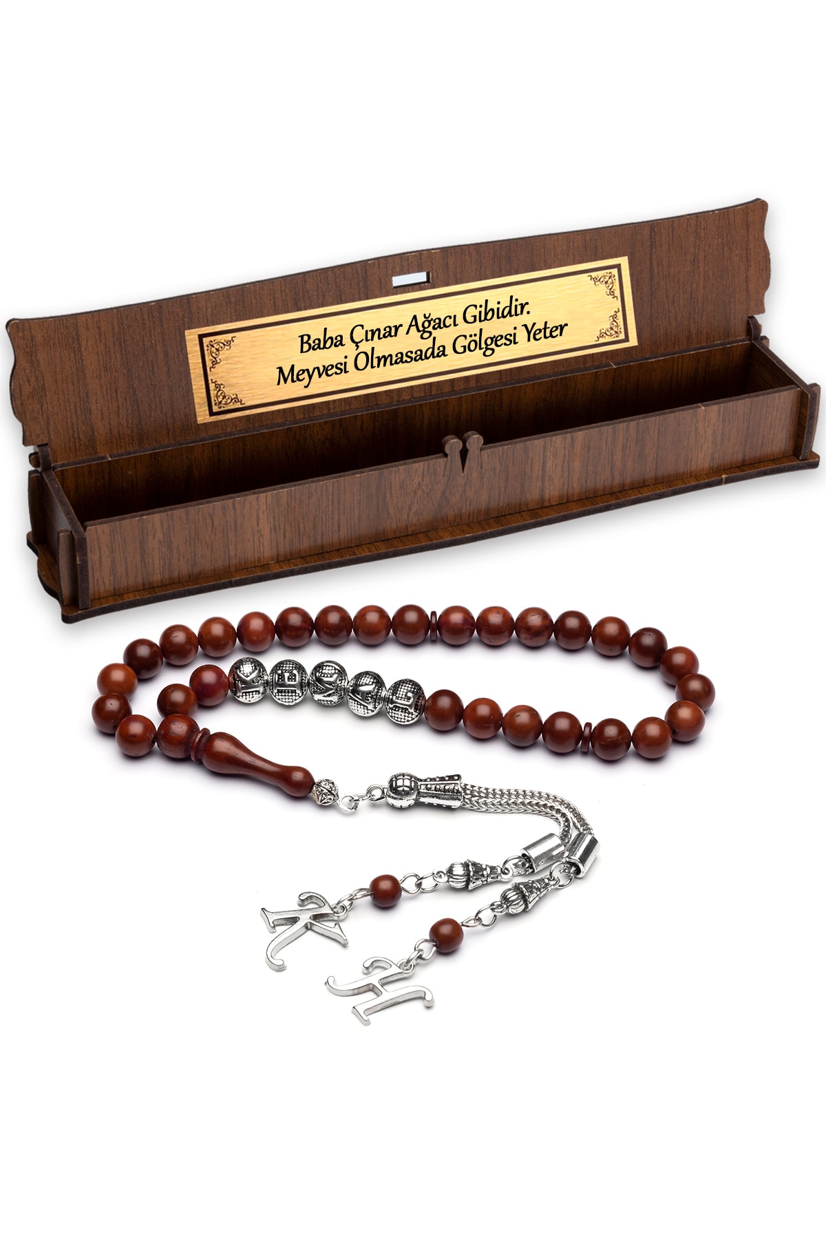 Gümüş kaplama malzemesiyle üretilmiş, uzun ömürlü ve şık bir görünüm sunar; Ağaç taşı detayı ile doğal ve estetik bir dokunuş katarken, her kullanımda özel bir hissiyat verir; İsimli tasarımıyla kişisel bir hediye seçeneği olarak öne çıkar; sevdiklerinize özel bir anlam taşır; Püskül detayları ile modern ve zarif bir görünüm sağlar, günlük kullanım için idealdir;