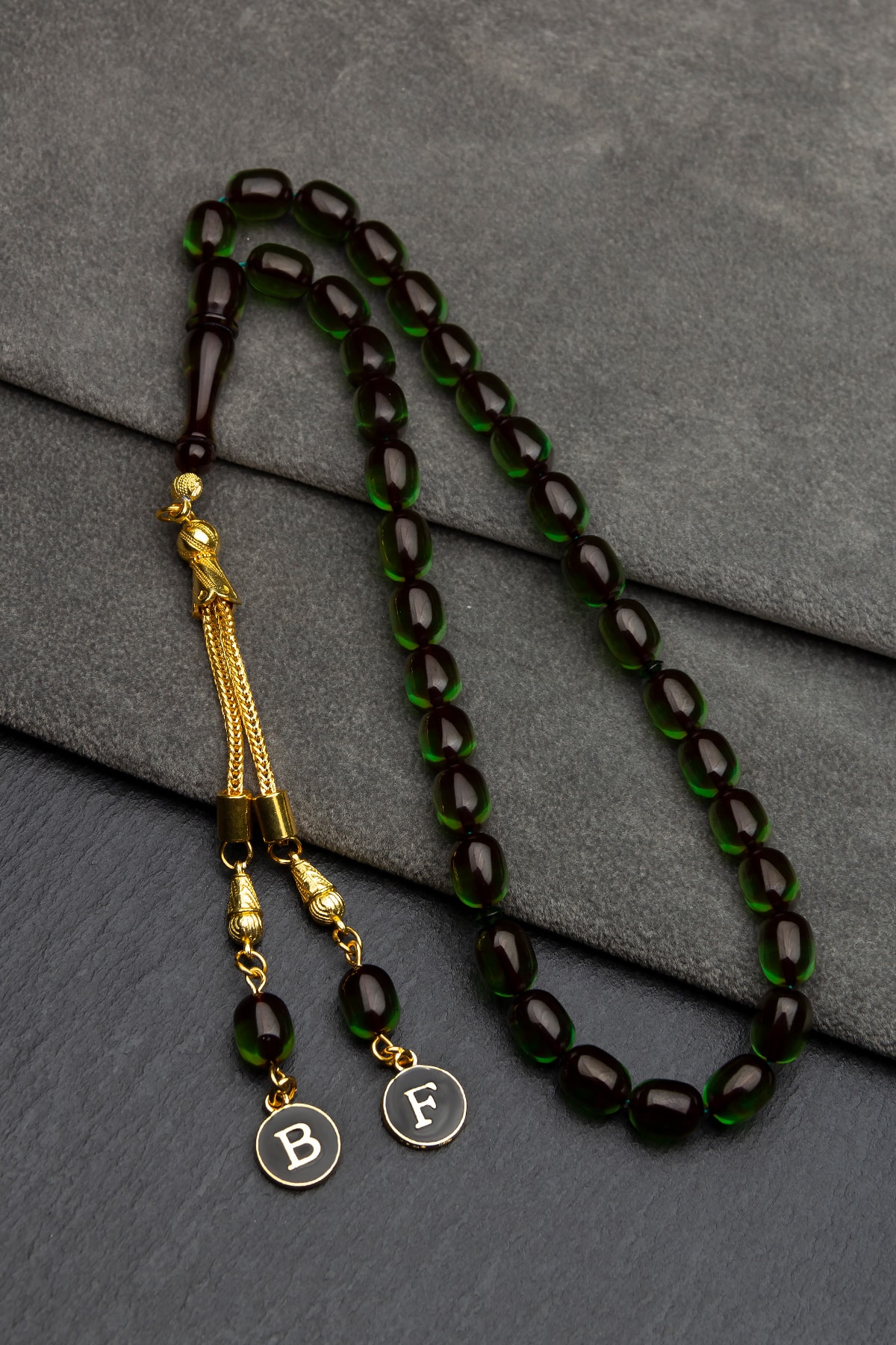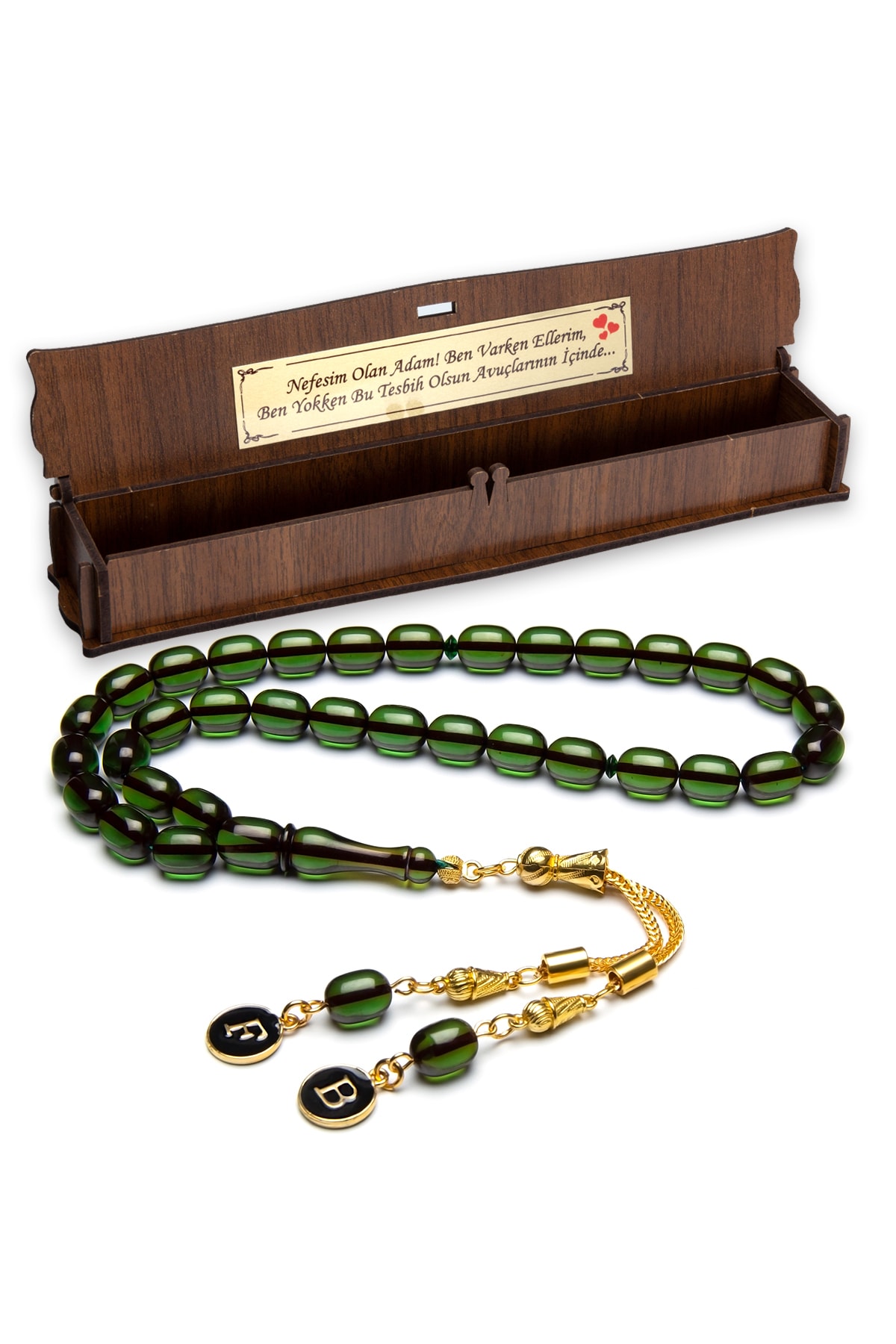 Erkek Hediyelik Harf Püsküllü Tesbih, Ateş Kehribar Tesbih