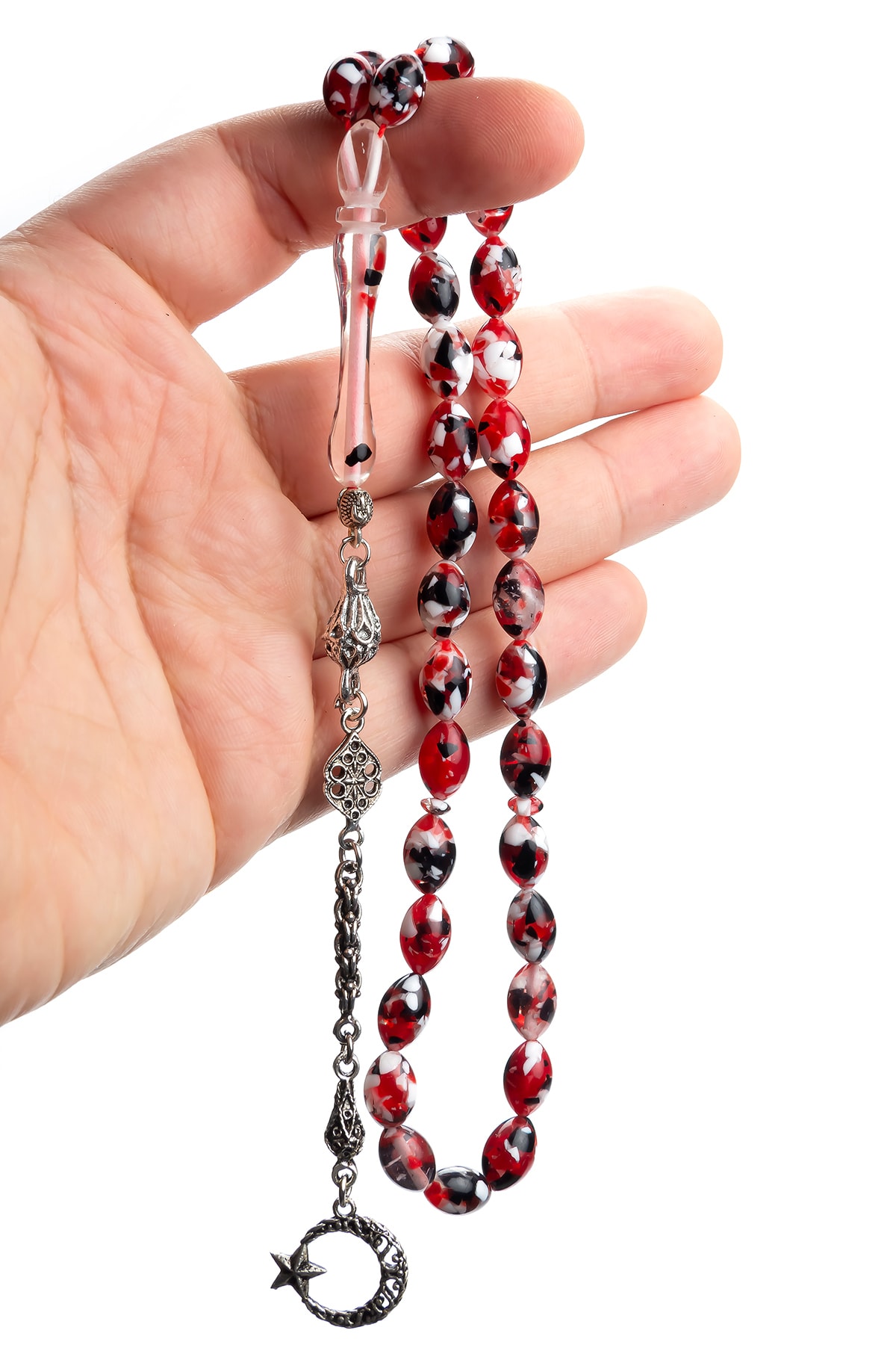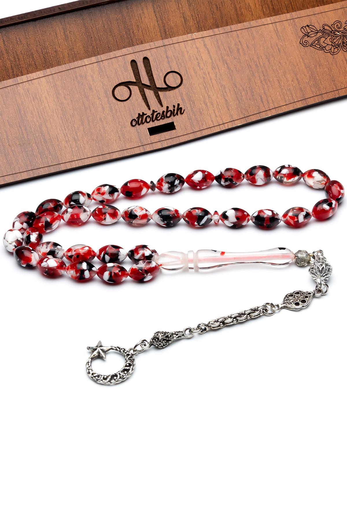 Kehribar taşı, doğal güzelliği ve benzersiz dokusuyla dikkat çeken bir materyaldir; Bu tesbih, kehribarın sıcak ve doğal tonlarını taşıyan parçalarla süslenmiştir; Gümüş kaplama detayları, tesbihin şıklığını artırarak hem göz alıcı bir görünüm kazandırır hem de dayanıklılık sağlar; Uzun süreli kullanım için idealdir; Mozaik tasarım, her bir parçanın özenle işlenmiş olmasıyla dikkat çeker ve her kullanımda farklı bir deneyim sunar; Kırmızı renkli mozaik parçalar, klasik ve zamansız bir estetik sunarak her tür kıyafetle uyum sağlar;