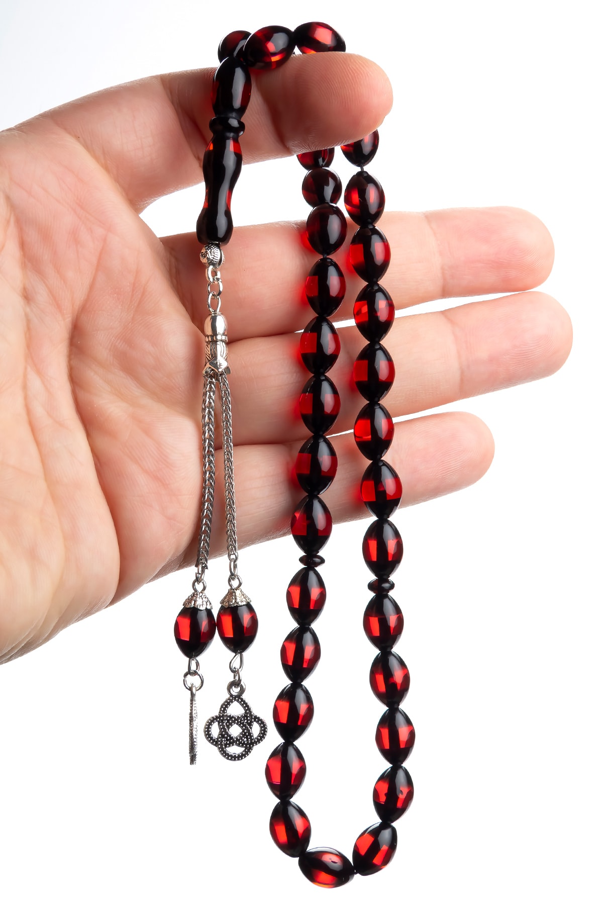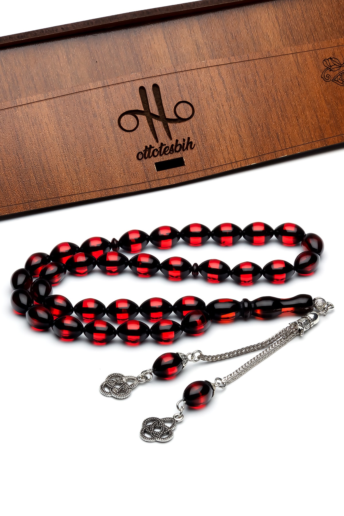 Erkek Hediyelik Kırmızı Sürmeli Toz Kehribar Tesbih