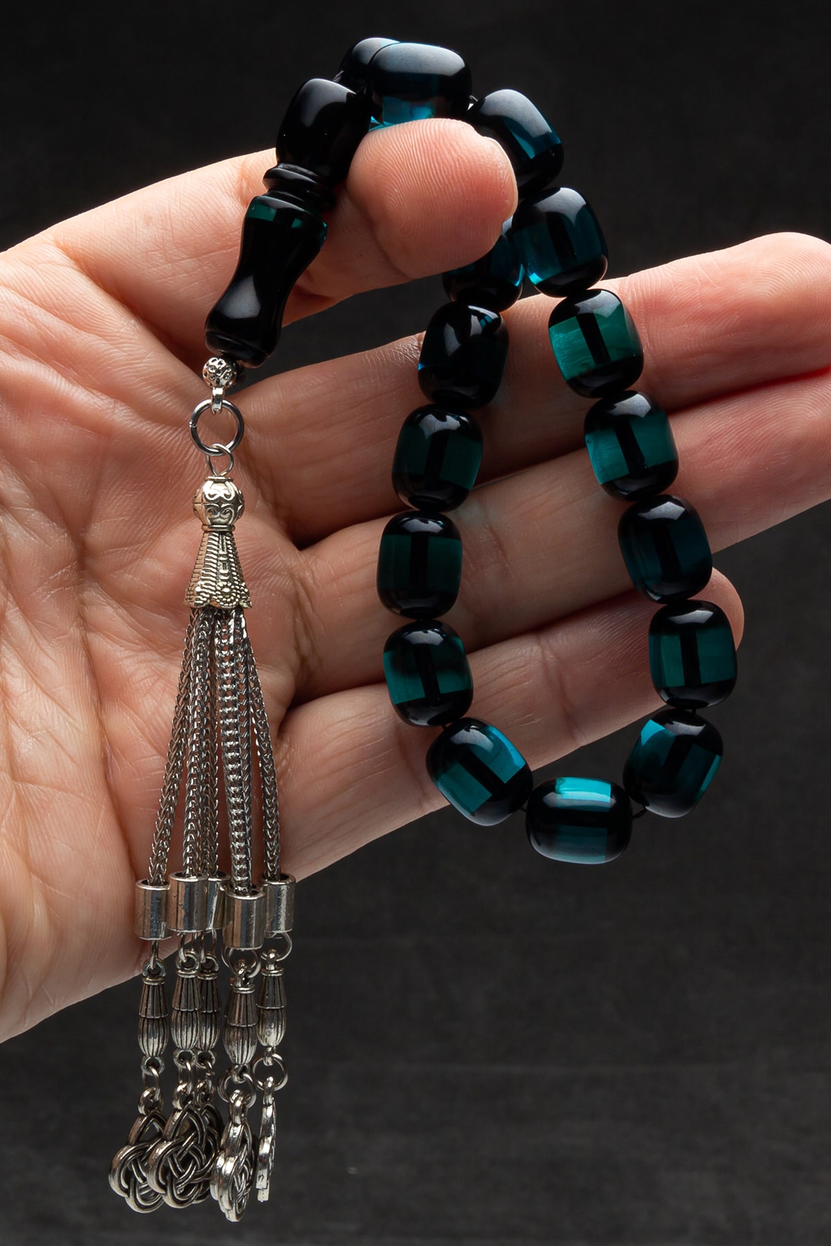 Tesbih Malzemesi: Kokulu Toz Kehribar ; Tane Ebatı: 11×13.5mm ; Kamçı (Püskül) Tipi: Alpaka Metal ; Paket Içeriği: 1 Adet Tesbih 1 Adet Ahşap Tesbih Saklama Kutusu ;
