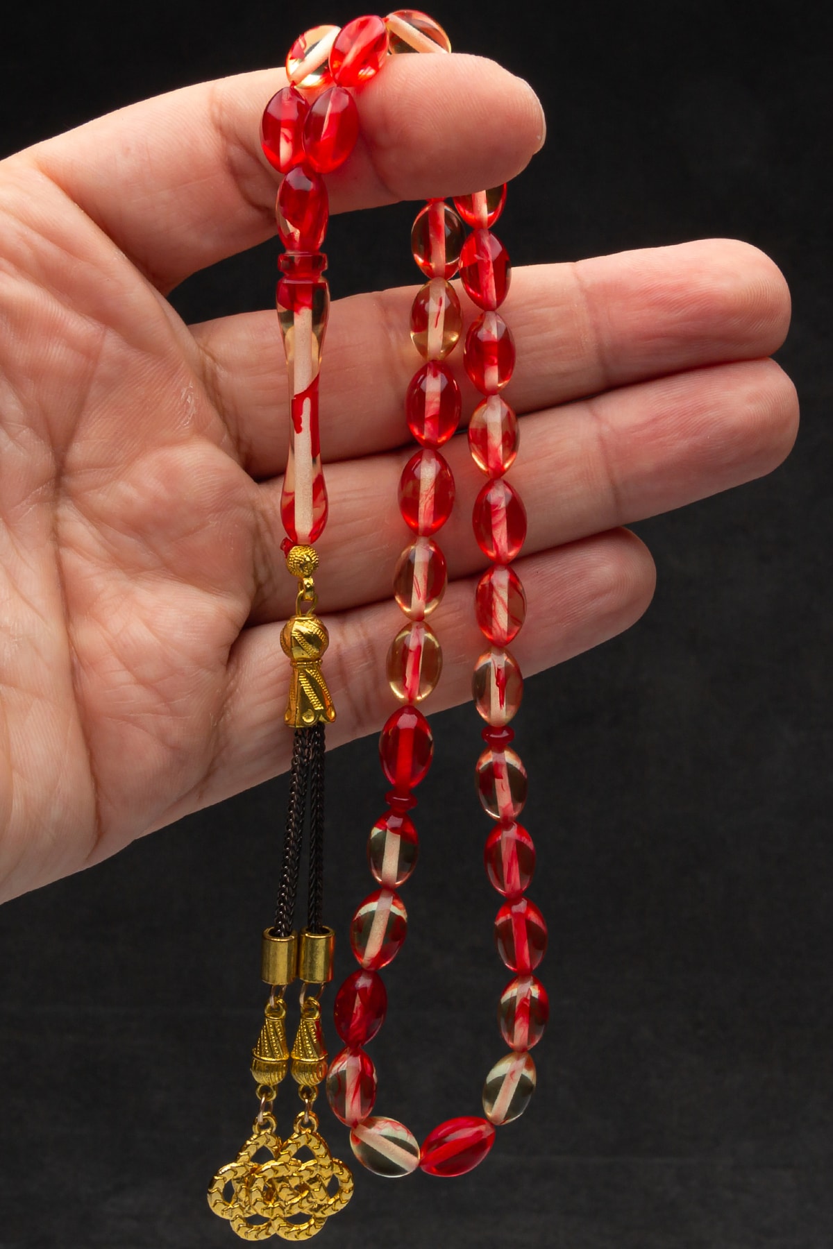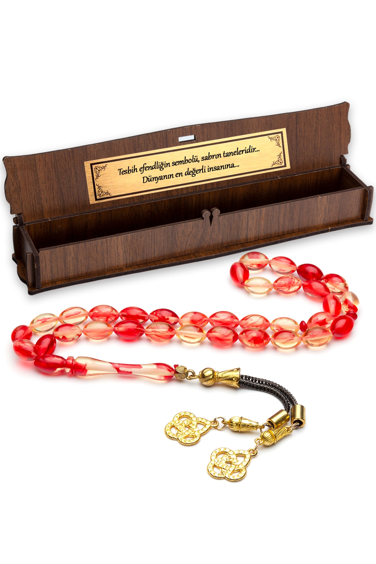 Erkek Hediyelik Şeffaf Kırmızı Renk Süzmesi Toz Kehribar Tesbih
