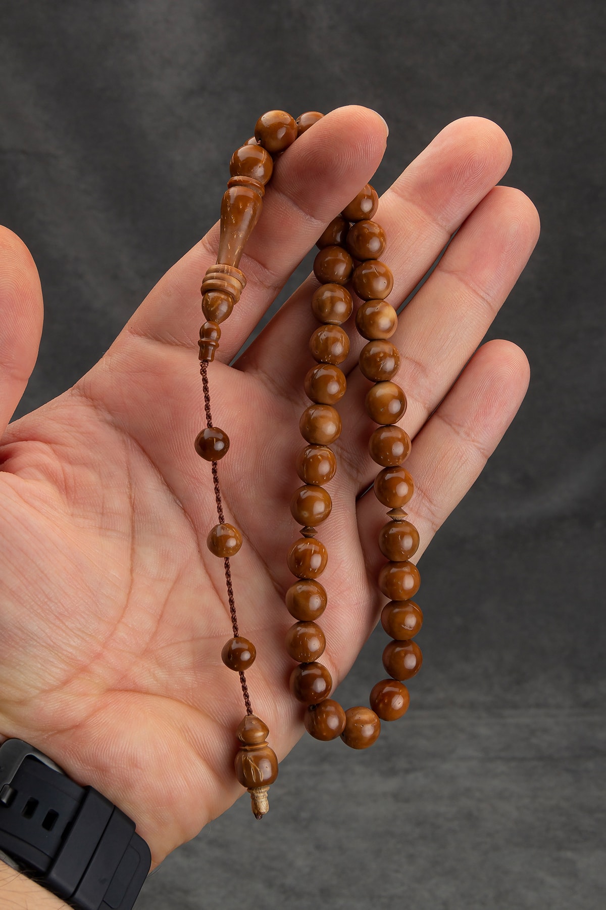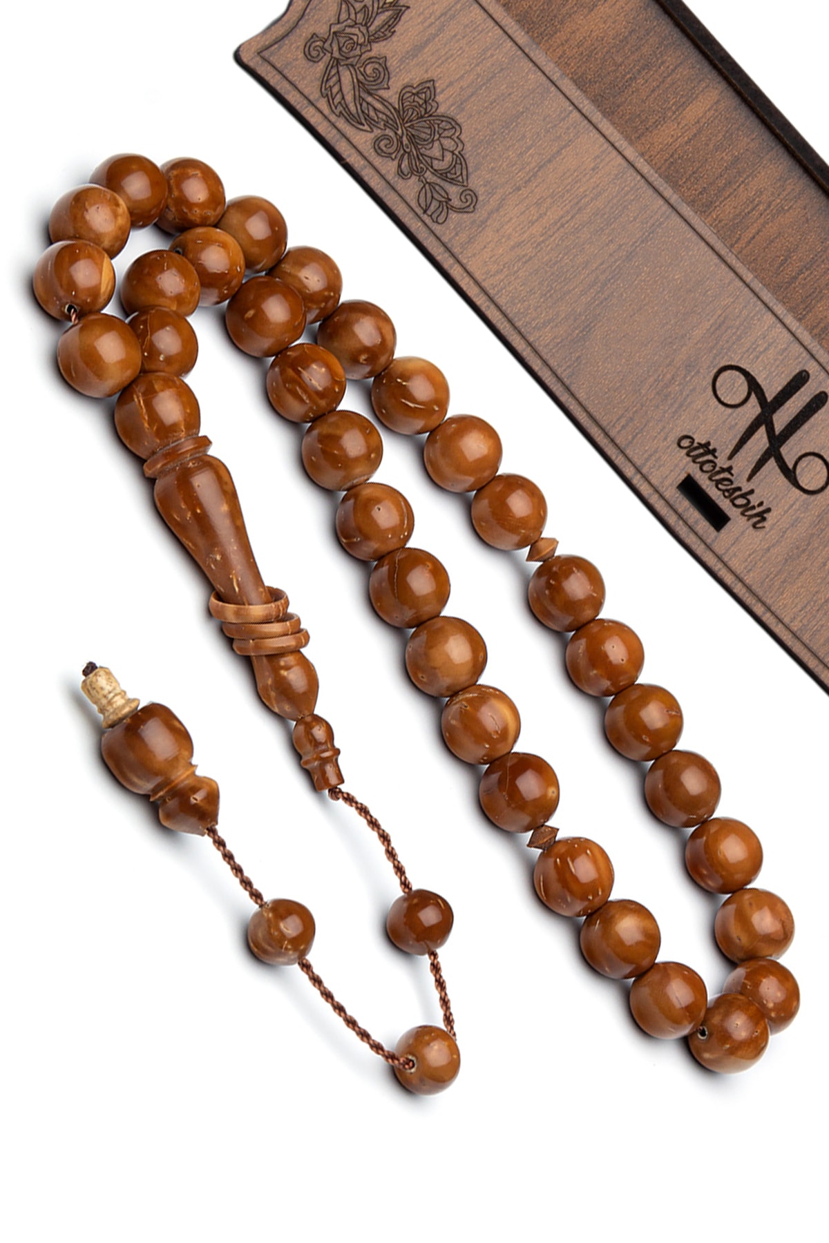Doğal ahşap malzemesiyle üretilen bu tesbih, her bir taşı özenle seçilmiş ve işlenmiştir, bu sayede her bir tanesi eşsiz bir dokunuş sunar; Gümüş kaplama detayları ile zenginleştirilmiş tasarım, hem şıklığı hem de dayanıklılığı bir arada sunarak uzun süreli kullanım için idealdir; 10mm küre kesim kuka tasarımı, klasik ve zamansız bir görünüm sağlayarak her tür kıyafetle uyum içinde kullanılabilir; Püskül detayları, tesbihin estetik değerini artırarak göz alıcı bir görünüm kazandırır ve özel günlerde hediye olarak tercih edilebilir;