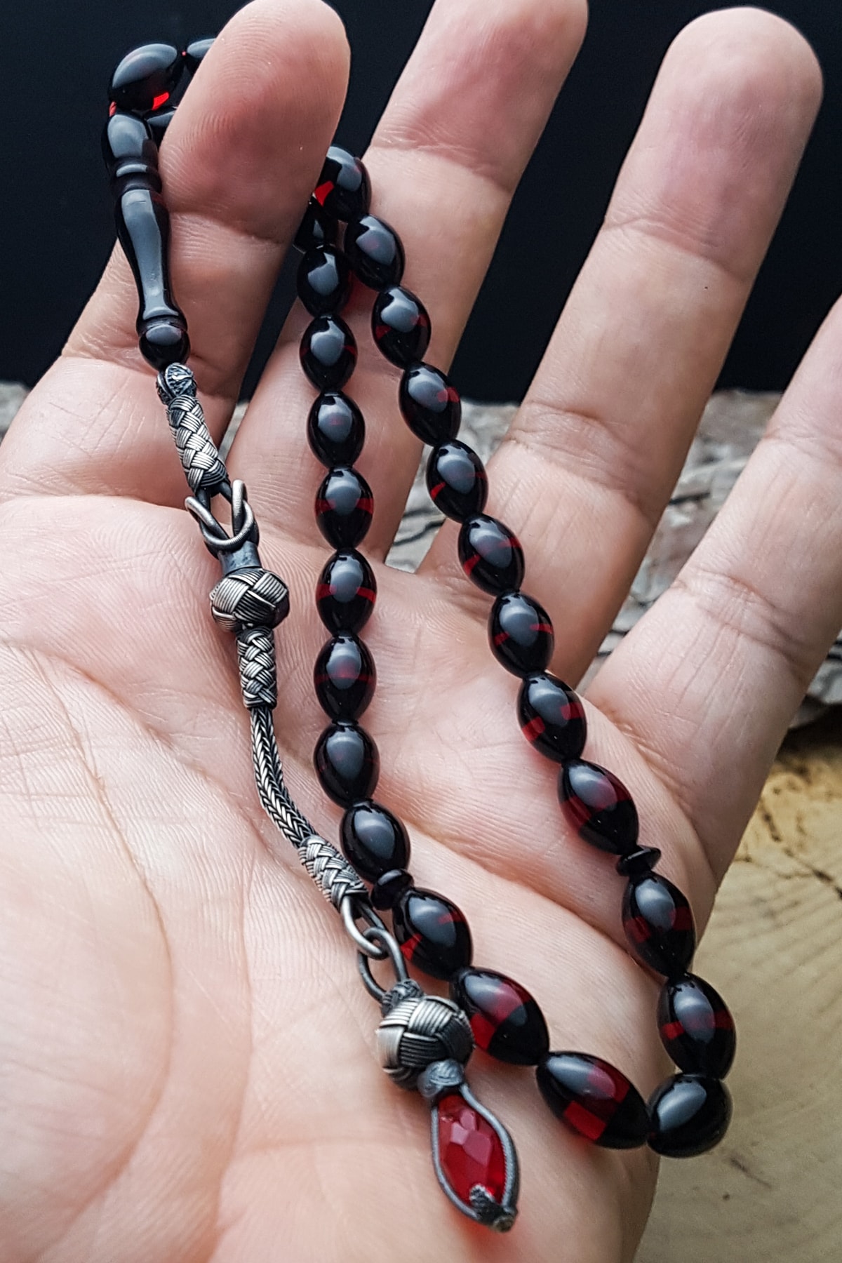 Tesbih Malzemesi: Kokulu Toz Kehribar Tane Ebatı: 7x11mm Kamçı (Püskül) Tipi: 1000 Ayar Gümüş Paket Içeriği: 1 Adet Tesbih 1 Adet Ahşap Tesbih Saklama Kutusu