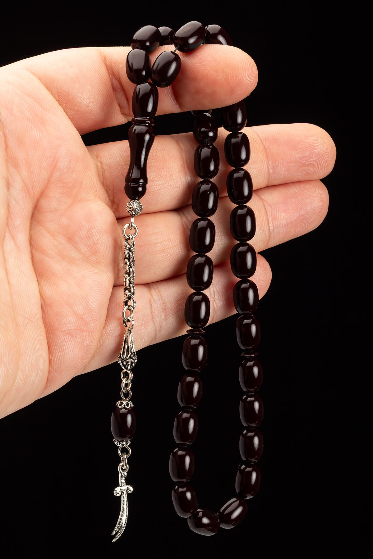 Erkek Hediyelik Zülfikar Kılıcı Ateş Kehribar Tesbih