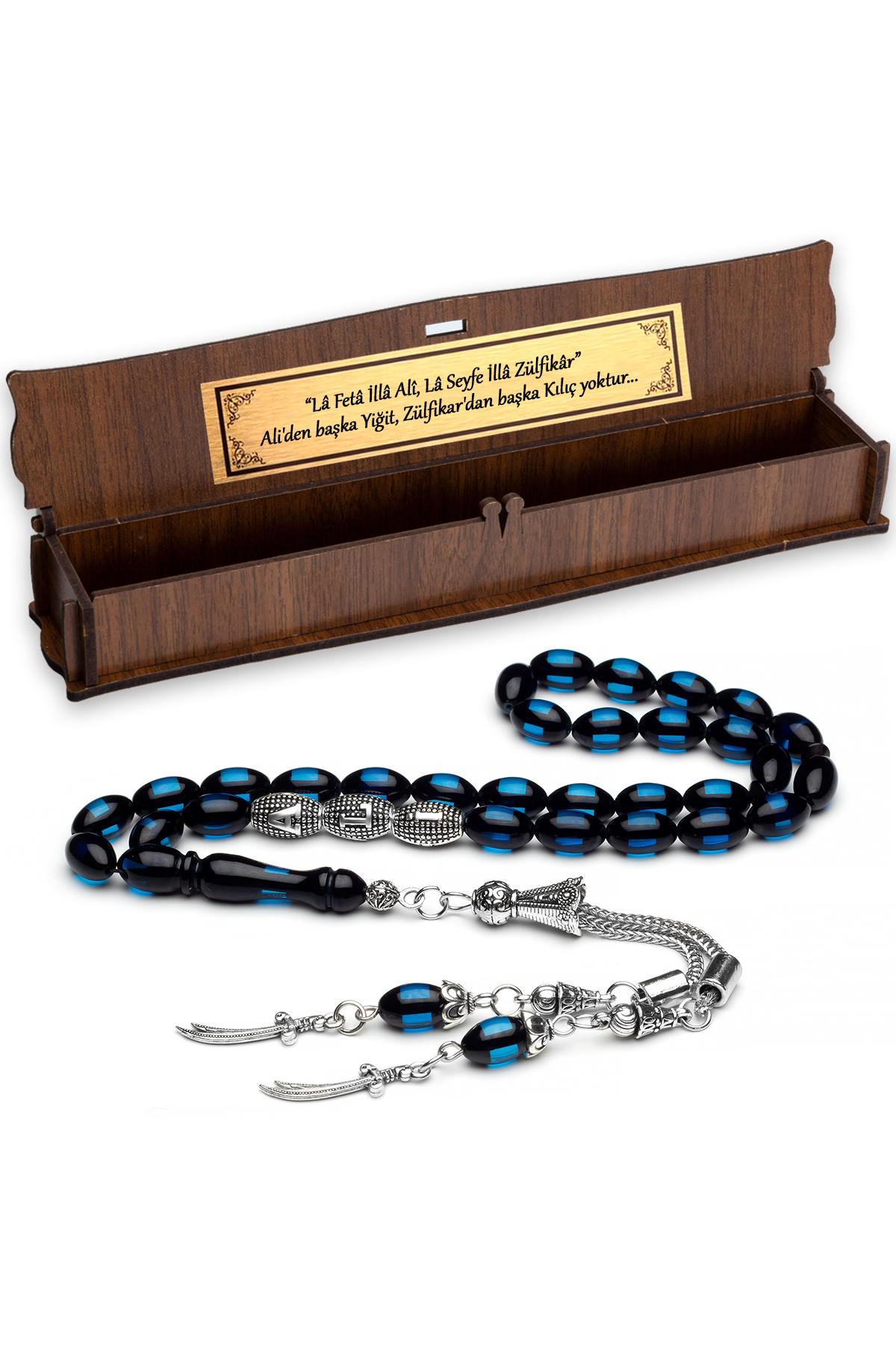 Erkek Hediyelik Zülfikar Kılıcı Püskül Kehribar Tesbih, Isimli Tespih