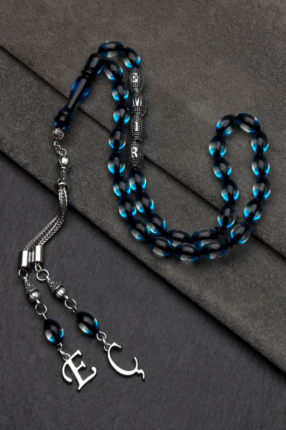 Gümüş kaplama detaylarıyla zenginleştirilmiş, şık ve modern bir tasarıma sahip; Doğal kehribar taşı kullanılarak üretilmiş, her bir tesbih tanesi özenle işlenmiştir; Özel isim baskısı ile kişisel bir dokunuş eklenmiş, hediye olarak tercih edilenler için ideal bir seçenek;